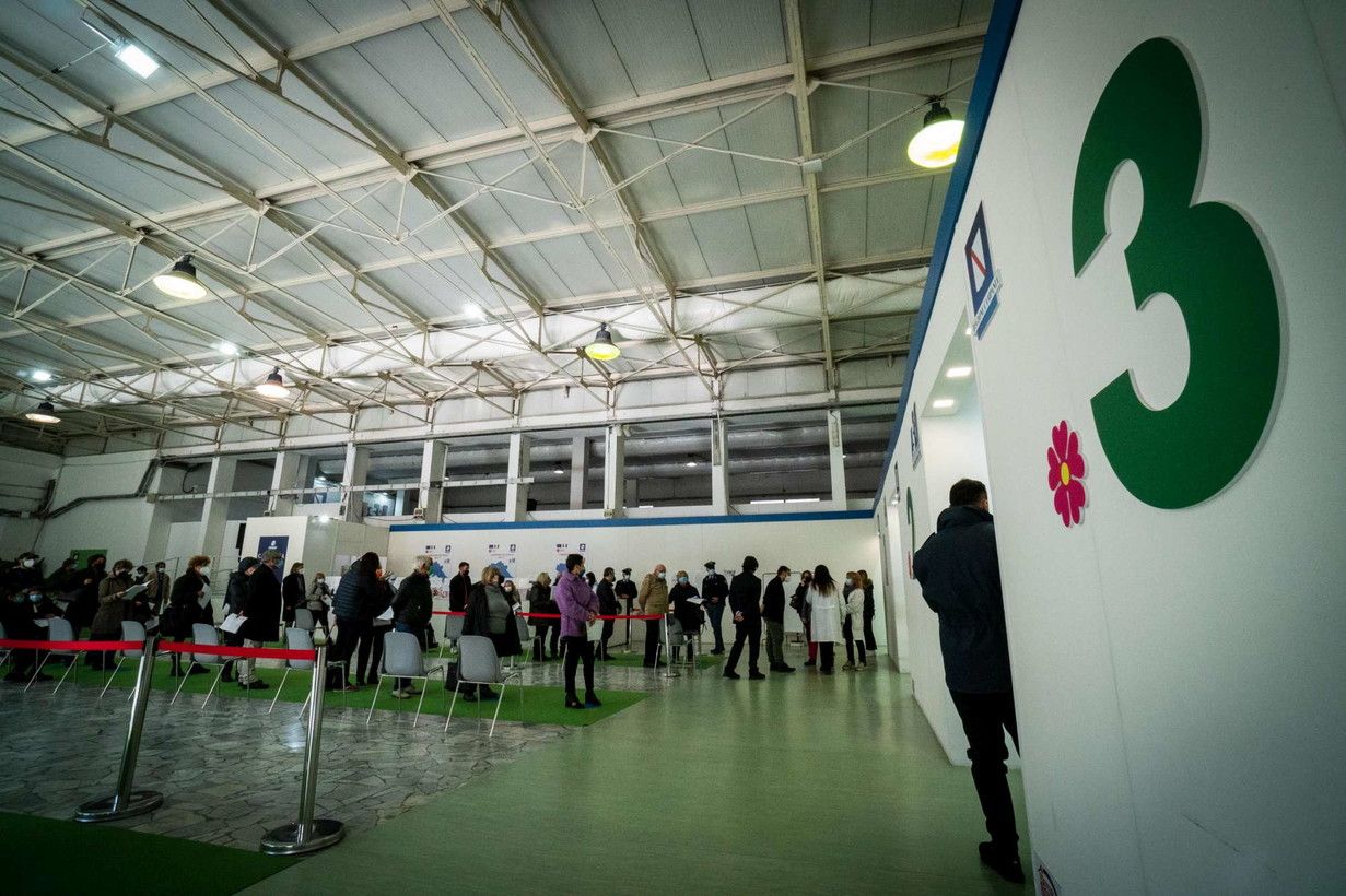 Procede la somministrazione del terzo vaccino per forze dellordine, fasce deboli e docenti al centro vaccinale della Mostra d'Oltremare a Napoli. Dal 15 dicembre scatta l'obbligo vaccinale del personale della scuola e anche per gli agenti e le forze dell'ordine, pena la sospensione dal servizio senza remunerazione e il ritiro temporaneo di tesserino, placca, arma e manette.