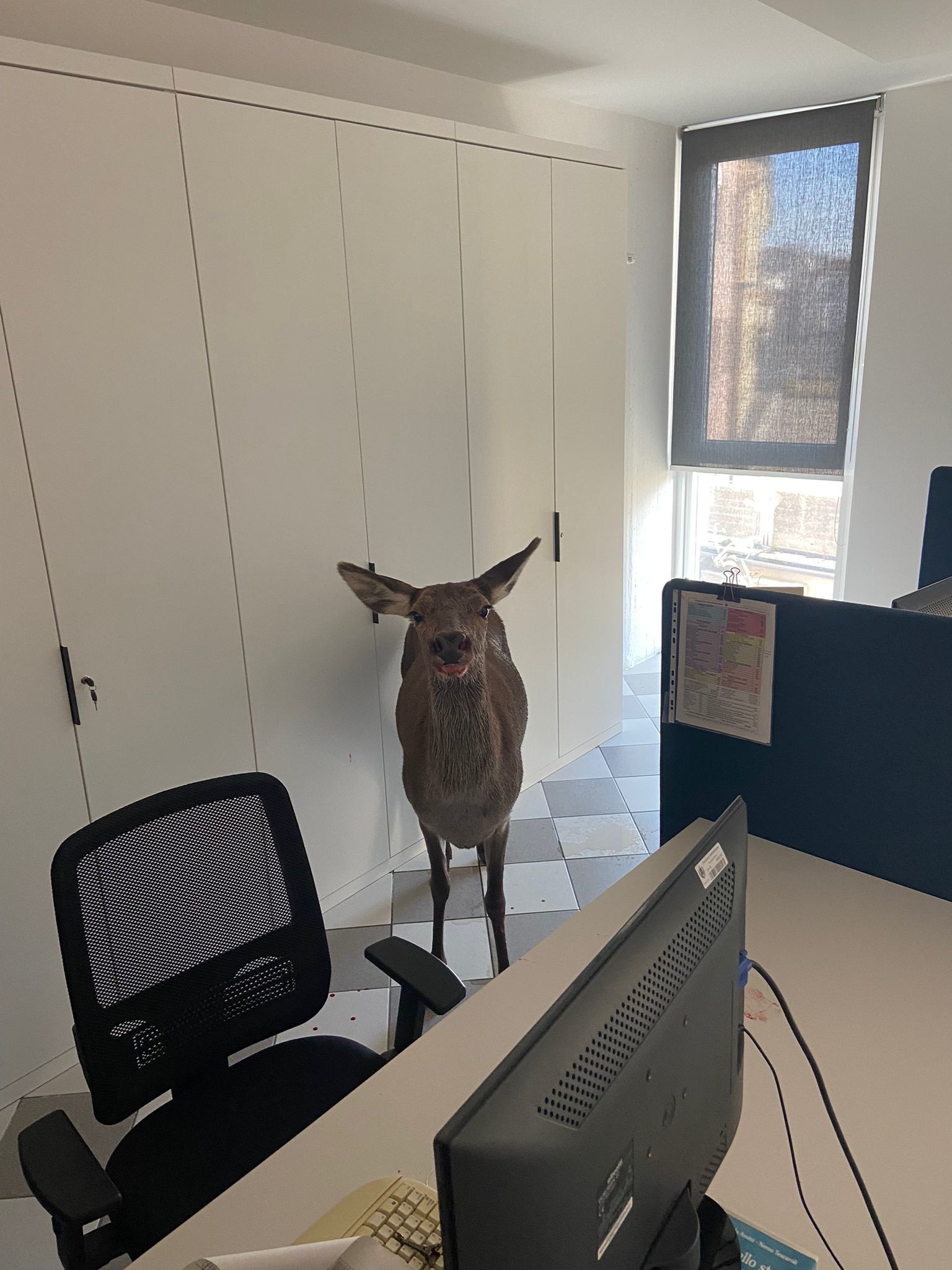 Valdobbiadene, l'irruzione di un cervo negli uffici comunali