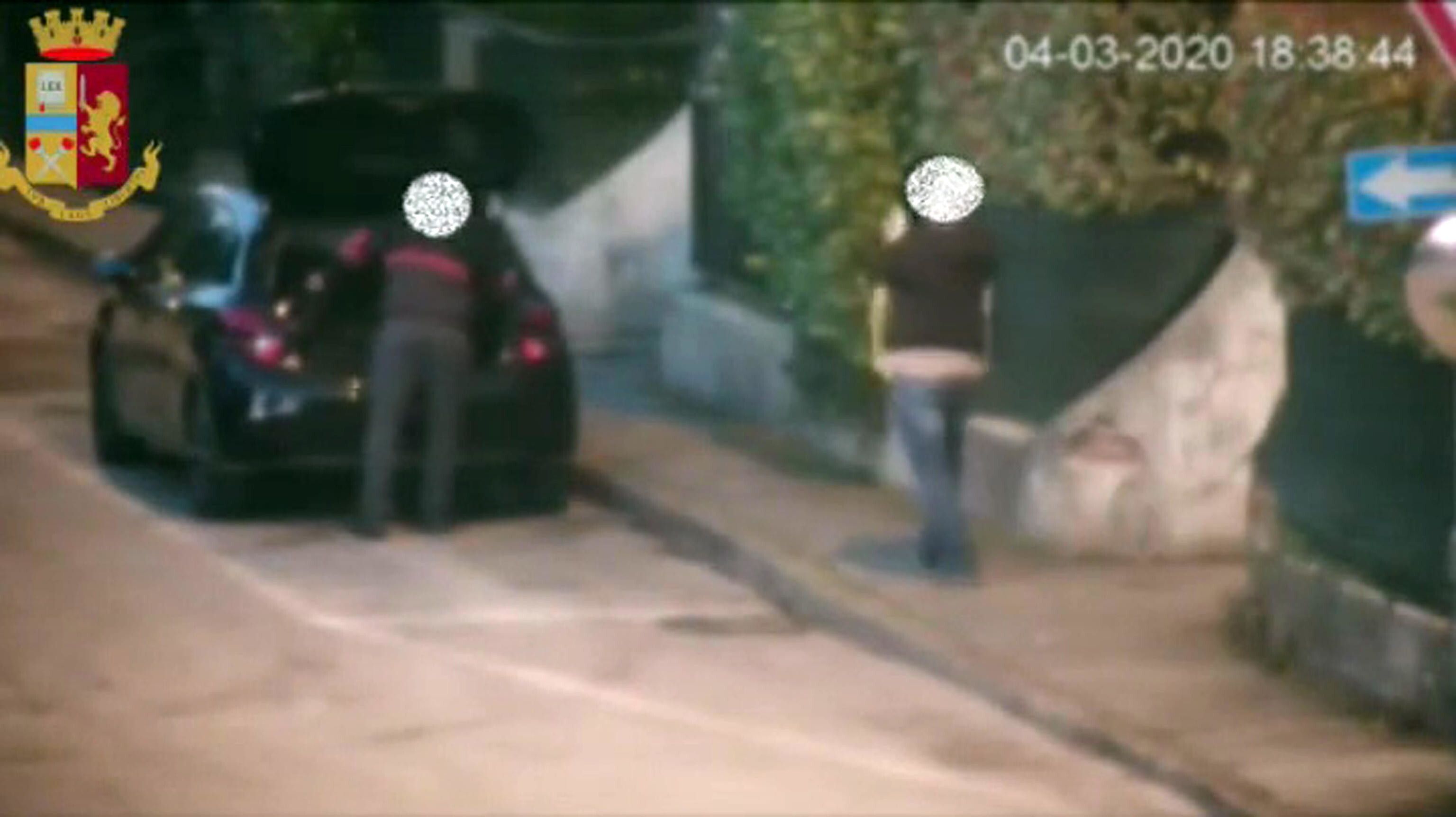 Un fermo immagine tratto da un video mostra un momento dell'operazione che ha portato a eseguire 8 misure cautelari, tra i destinatari ultras e appartenenti alla Curva Sud del Milan.