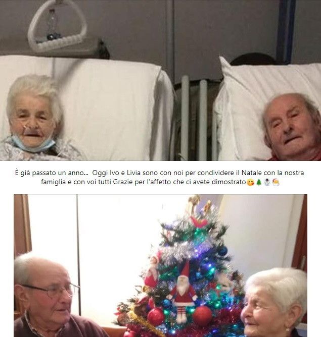 Un anno fa erano in un letto d'ospedale e, mano nella mano, si facevano forza nella lotta contro il Covid. Oggi, Ivo Landi e sua moglie Livia Arrighini, novantenni di Prato, si fanno fotografare dai figli sempre mano nella mano, ma, questa volta, davanti all'albero di Natale della loro casa. E ora possono sorridere sereni: celebreranno in famiglia le Feste, i due nonnini che hanno vinto il virus anche grazie all'amore che li lega da più di 60 anni. La foto-simbolo della coppia, scattata di nascosto da un'infermiera nel dicembre del 2020, aveva commosso l'Italia: i due anziani erano stati immortalati, mentre, con l'aiuto dell'ossigeno, nella stessa stanza d'ospedale, lottavano insieme contro il coronavirus. Condividere quei momenti di malattia li aiutò a tornare a casa.