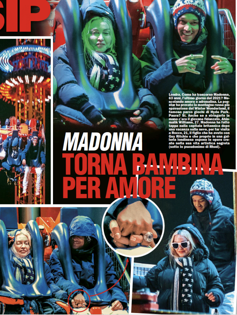 Quello di Madonna è stato un Capodanno "altalenante" e, decisamente, al cardiopalma. La popstar 63enne è infatti salita sulle montagne russe del Winter Wonderland, il famoso parco giochi di Hyde Park a Londra. Ma, come mostrano le foto pubblicate dal settimanale "Chi", la cantante non era sola. Al suo fianco, l'ormai inseparabile fidanzato: il 27enne Ahlamalik Williams. Cosa non si fa per amore...
