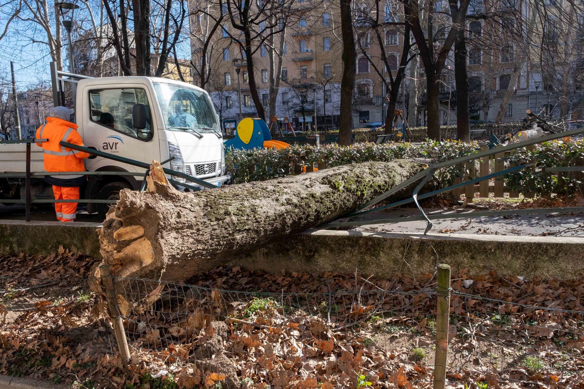 Le potenti raffiche di vento che stanno spazzando Milano hanno causato il crollo di alcuni alberi in piazza Bacone. I grossi tronchi sono finiti sopra un'area giochi per bambini che fortunatamente a quell'ora si trovavano tutti a scuola. I vigili del fuoco al lavoro per mettere in sicurezza l'intera zona.