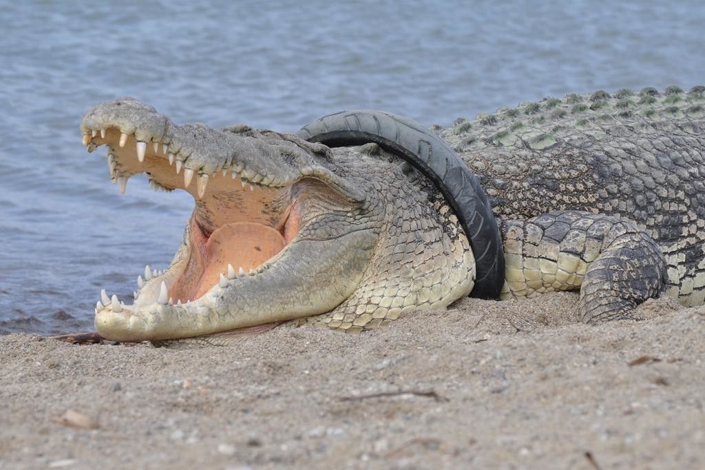 Il rettile, soprannominato dalla popolazione locale "buaya kalung ban", che significa coccodrillo con una collana di pneumatici, è stato liberato dalla gomma e rilasciato lunedì sera nel fiume Palu, nella provincia di Central Sulawesi.