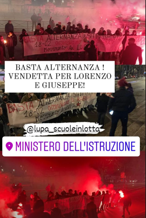Reazione immediata di protesta, in tutta Italia, dei giovani dell'Opposizione studentesca d'alternativa (Osa), dopo la morte del 16enne, avvenuta in provincia di Ancona per un incidente stradale mentre era impegnato in un apprendistato nell'ambito di un corso professionale. "In tutta Italia, blitz di Osa sotto gli Uffici scolastici regionali per richiedere l'abolizione immediata dei Pcto (l'attuale nome dell'alternanza scuola lavoro, ndr) e le dimissioni di Bianchi. A Roma, Osa è con gli studenti del movimento 'la Lupa' al Miur per portare tutta la nostra rabbia sotto i palazzi del governo Draghi". È quanto rendono noto gli studenti di Osa Roma. "A questo ennesimo fatto tragico che colpisce la nostra generazione, dopo la morte di Lorenzo neanche un mese fa, la nostra risposta è la lotta. Gli studenti sono pronti a riversarsi nelle strade delle città di tutta Italia il 18 febbraio - ribadiscono gli studenti -, per la giornata di mobilitazione studentesca nazionale, per portare la rabbia della nostra generazione dopo questa ennesima morte, richiedere l'abolizione immediata dell'alternanza scuola lavoro e chiedere le dimissioni del ministro Bianchi in quanto responsabile della situazione gravissima che stiamo vivendo. Non dimenticheremo e non perdoneremo: è una promessa di lotta", concludono.