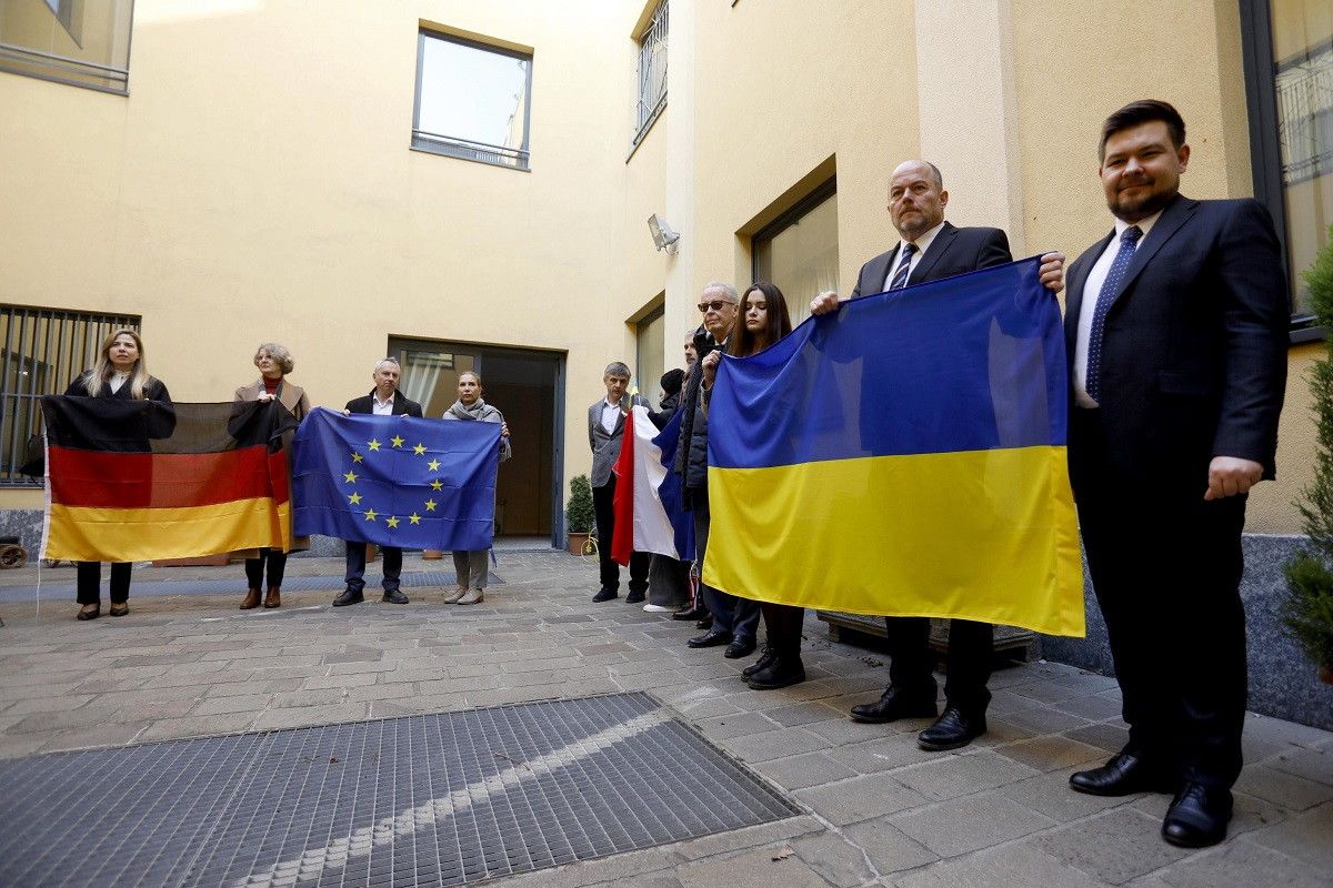 I consoli dei Paesi dell'Unione Europea a Milano e la rappresentanza della Commissione europea e del Parlamento europeo in città hanno voluto portare la loro solidarietà al console ucraino a Milano dopo l'attacco della Russia. "Ci sembrava doveroso - ha spiegato il console francese a Milano, François Revardeaux - dimostrare la solidarietà dei Paesi dell'Unione Europea in questo momento drammatico che stiamo vivendo. Così come è stato fatto a Roma, abbiamo pensato che un gruppo di consoli generali dovesse portare anche a Milano la solidarietà al popolo ucraino e al suo console". Nel corso del presidio i consoli hanno incontrato il collega ucraino Andrii Kartysh, e c'è stato uno scambio di bandiere della Ue, della Francia, che ha la presidenza di turno dell'Unione, e dell'Ucraina in segno di solidarietà. "La Commissione europea è a fianco dell'Ucraina per ribadire che siamo uniti più che mai - ha spiegato Massimo Gaudina, capo rappresentanza della Commissione Ue a Milano -. Sono state decise una serie di sanzioni che colpiranno la Russia e ci si occuperà del problema dei profughi". Al presidio hanno partecipato anche i consoli di Croazia, Austria, Germania, Polonia Ungheria.