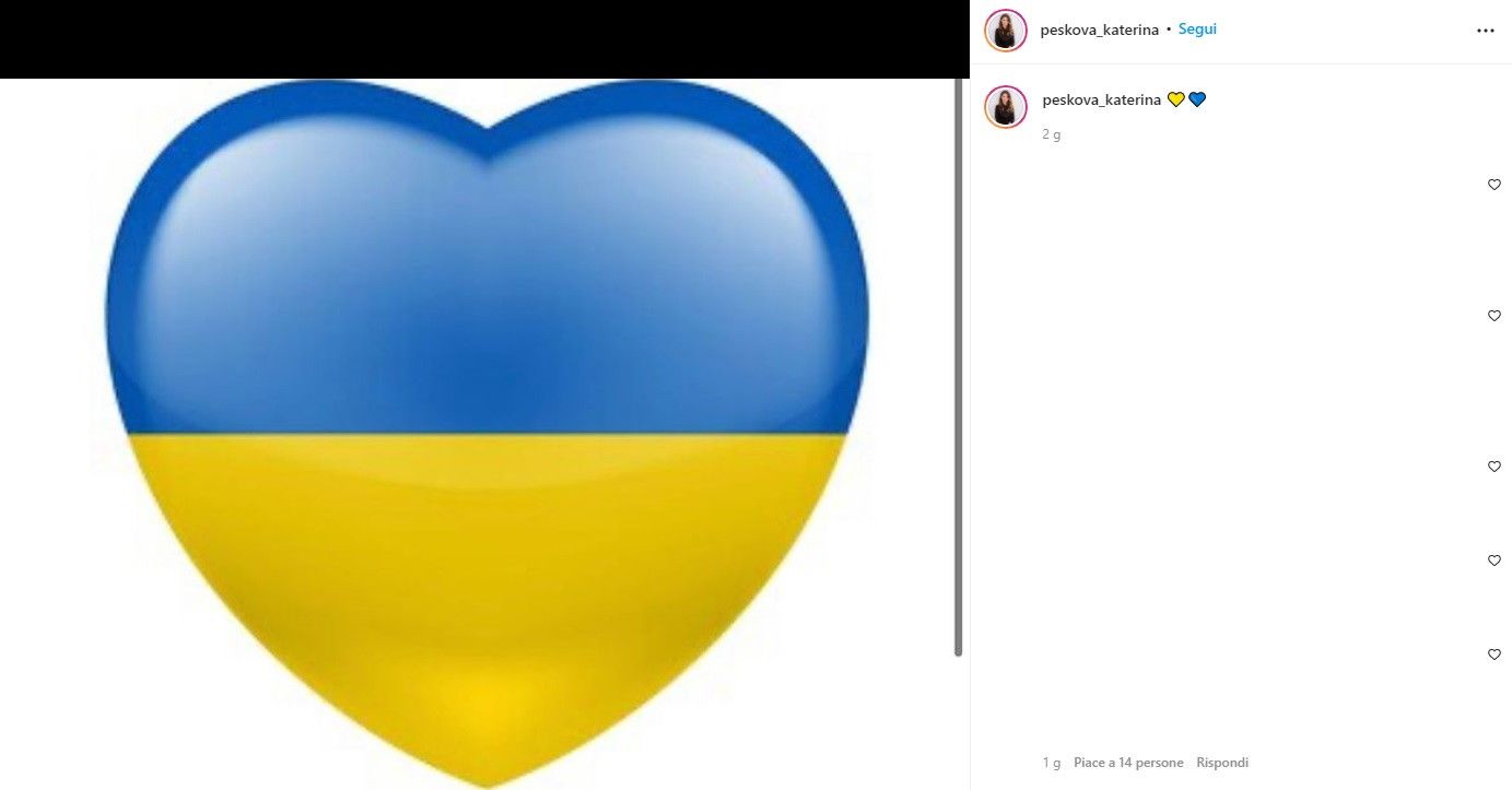 © Instagram|Il messaggio di solidarietà all'Ucraina da parte di Katerina Peskova, ex moglie del portavoce di Putin Dmitrij Peskov