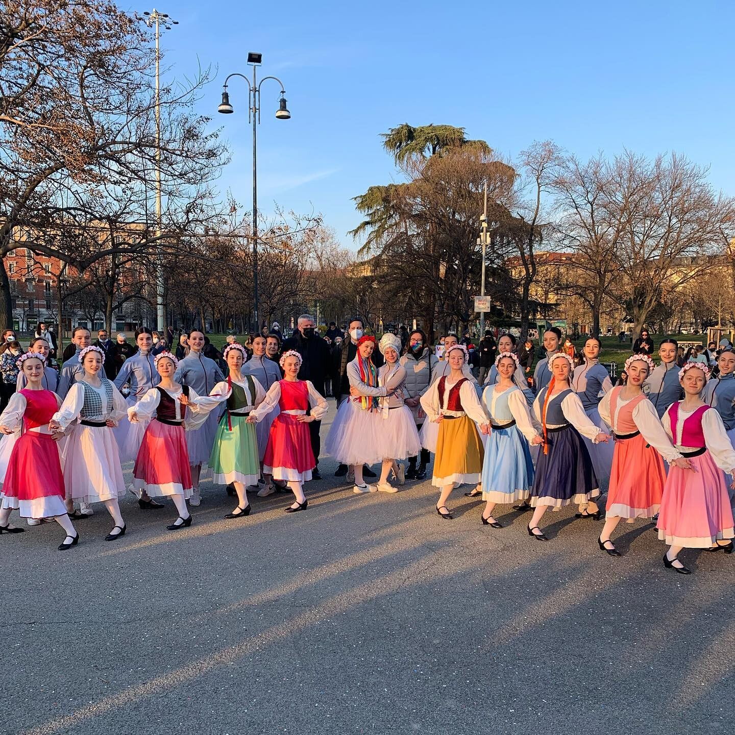Ucraini, russi, bielorussi, moldavi, italiani: insegnanti e allievi dell'Accademia ucraina di balletto di Milano si sono esibiti in un flash mob per la pace in Ucraina organizzato dal Municipio 4 in Largo Marinai d'Italia.