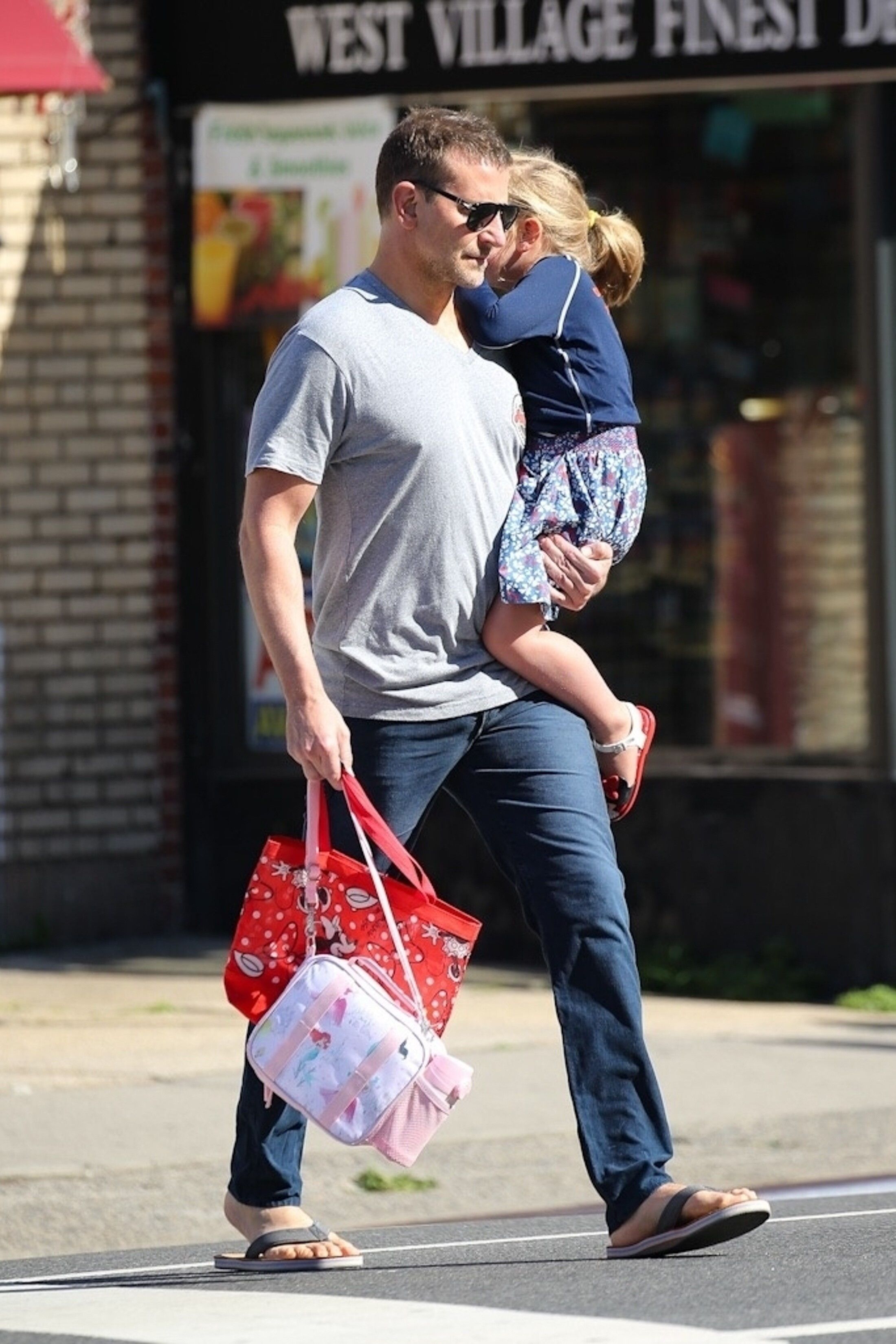 © IPA|Bradley Cooper (in ciabatte) porta in braccio la piccola Lea e tutte le sue borse