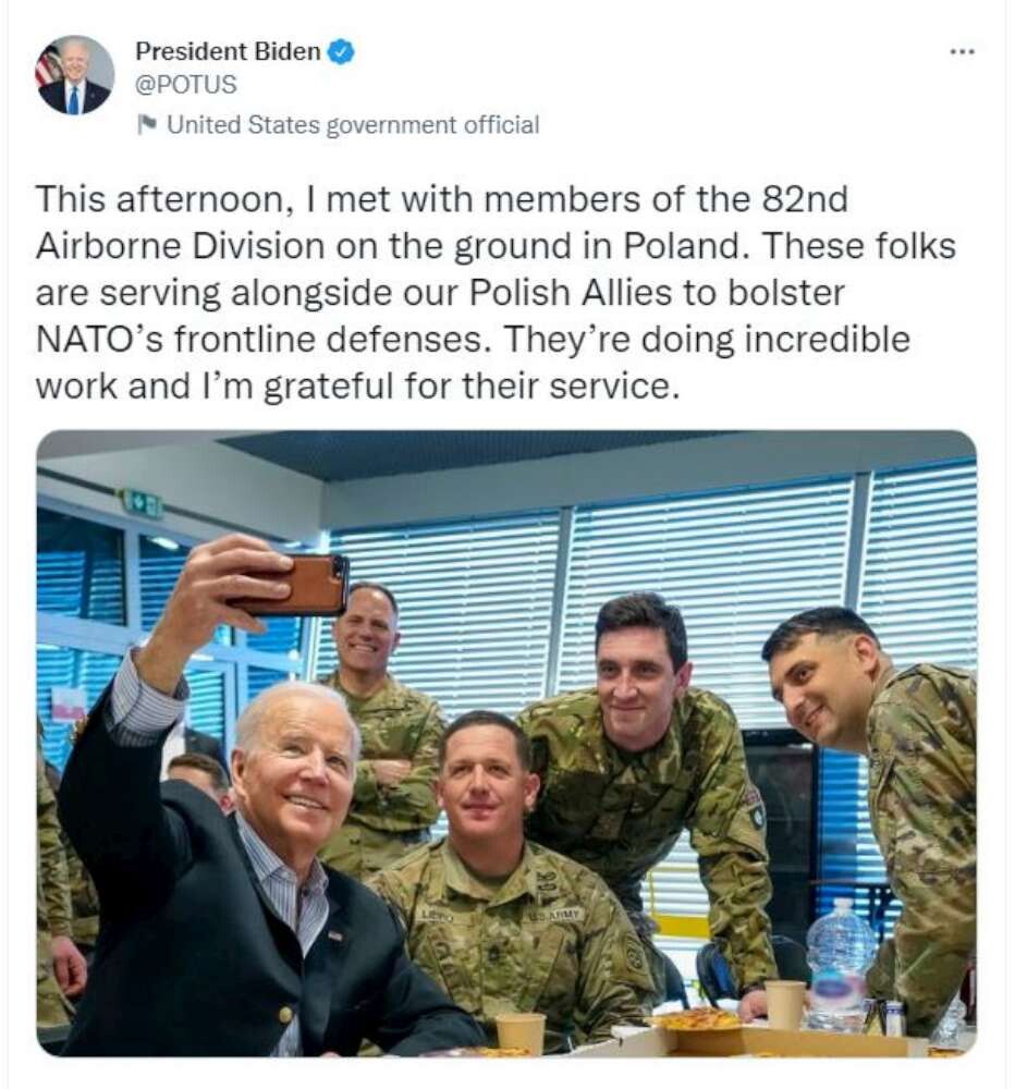 Il presidente Usa Joe Biden è arrivato a Varsavia dopo la visita al centro militare di Rzeszow, dove ha incontrato i militari della 82esima divisione aviotrasportata e fatto il punto sull'emergenza rifugiati. Sabato Biden incontrerà il presidente polacco Andrzej Duda e farà visita allo stadio nazionale dove ogni giorno i profughi ucraini fanno richiesta per il Pesel, l'equivalente polacco del codice fiscale in Italia.