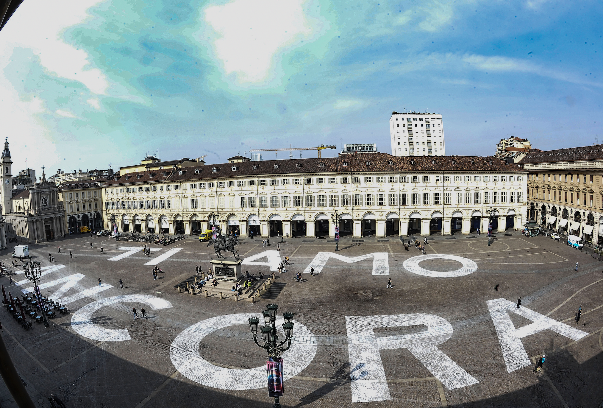 Maxi scritta "Ti amo ancora" ideata dalla band Eugenio in via Di Gioia