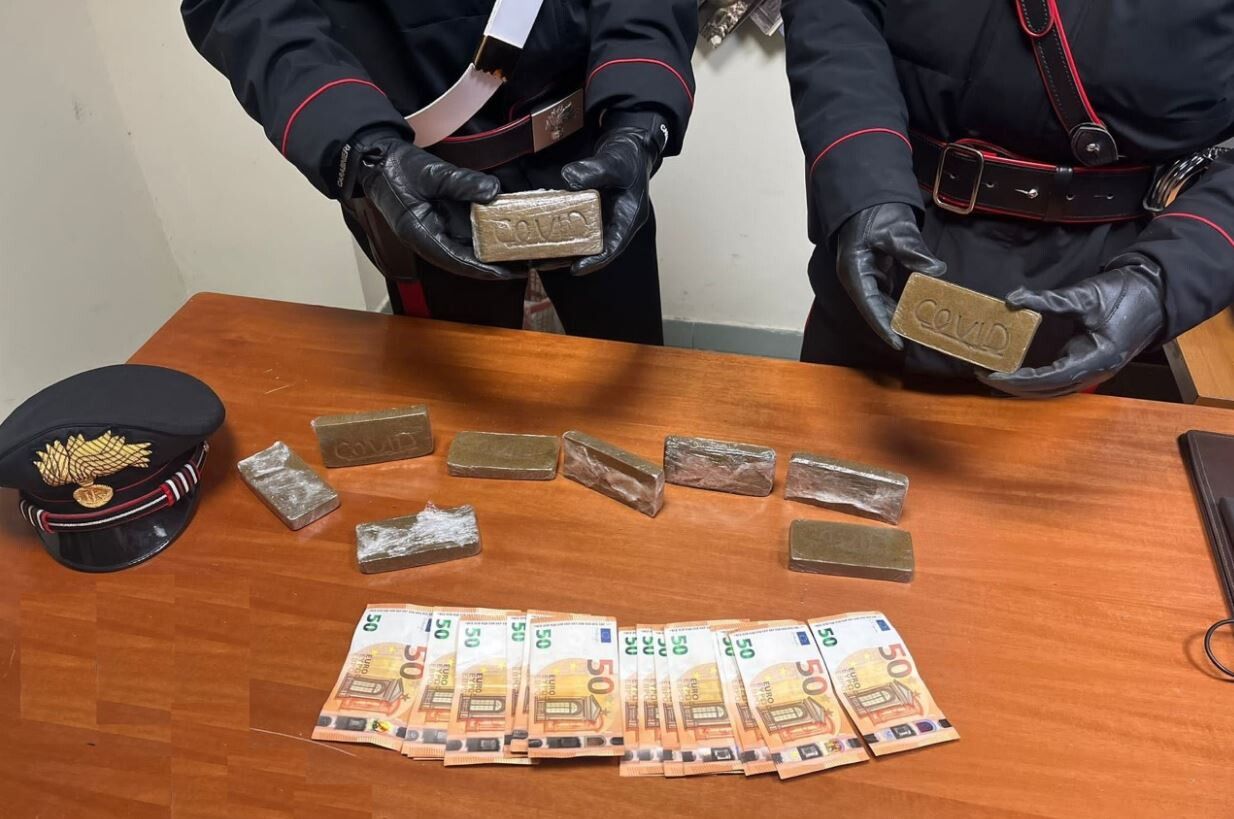 Nel vano motore della sua auto hanno trovato dieci panetti di hashish, un chilo in tutto, tutti marchiati con la scritta Covid. L'uomo, un romano di 56 anni già noto alle forze dell'ordine, è stato sorpreso dai carabinieri di Roma Acilia mentre si aggirava in auto. I militari lo hanno seguito e fermato. Subito hanno notato che era nervoso e, perquisendo il veicolo, hanno scoperto la droga e poco più di mille euro nel giubbotto. Arrestato, dopo l'udienza di convalida per lui sono stati disposti i domiciliari in attesa del processo.