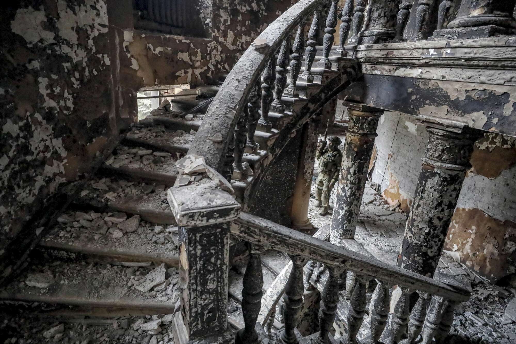 Ecco le immagini scattate dall'esercito russo durante la perlustrazione all'interno del teatro drammatico distrutto a Mariupol. Assieme ai soldati era presente Konstantin Ivashchenko, il neo sindaco della città di Mariupol nominato da Mosca. Sotto le macerie del teatro potrebbero essere morte circa 300 persone. Gli ucraini hanno accusato i russi di aver bombardato la struttura. Di contro i russi accusano il battaglione Azov di aver fatto saltare in aria il teatro. Secondo il capo del Centro di controllo della difesa nazionale russo, circa 133.214 persone, tra cui duemila lo scorso giorno, hanno lasciato Mariupol attraverso il corridoio umanitario in direzione est. Le immagini sono state diffuse dal ministero della Difesa russo.