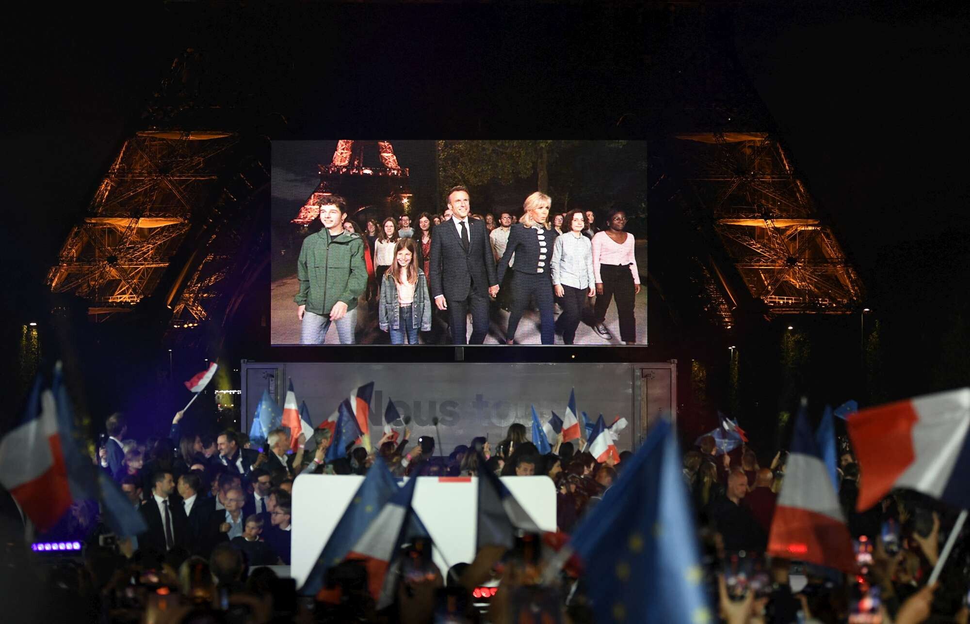 L'inno alla Gioia di Beethoven - l'inno dell'Europa unita - risuona sotto alla Tour Eiffel all'arrivo di Emmanuel Macron dopo la sua seconda vittoria all'Eliseo. Macron è arrivato mano nella mano assieme alla moglie Brigitte e circondato da giovanissimi. Macron scelse l'inno europeo anche dopo la vittoria del 2017. Poco prima i supporter di Macron avevano festeggiato la vittoria con le musiche dei Daft Punk.