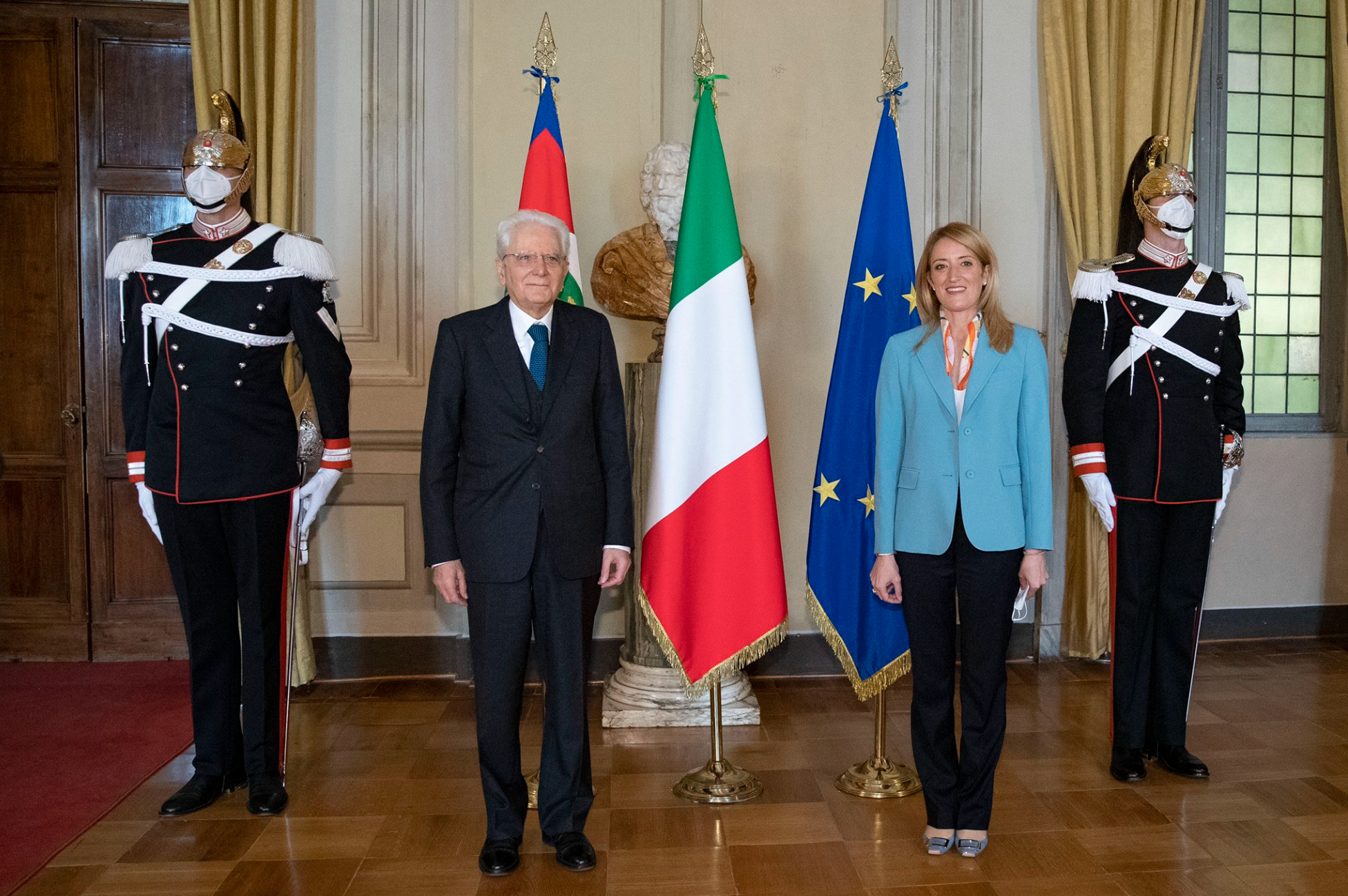 Il presidente della Repubblica, Sergio Mattarella, ha ricevuto al Quirinale la Presidente del Parlamento Europeo, Roberta Metsola. Al termine del colloquio i due Presidenti hanno incontrato una rappresentanza di studenti di scuole secondarie di secondo grado, ambasciatrici del Parlamento europeo e hanno risposto ad alcune domande sui temi prioritari per il futuro dell'Italia e dell'Europa con particolare riguardo ai giovani. Erano presenti all'incontro rappresentanze delle scuole: Liceo classico statale "Francesco Vivona" di Roma, Polo Statale ISS "P. Mattarella" di Dolci di Castellamare del Golfo (Tp), Collegio "Alessandro Volta" di Lecco, Istituto Tecnico Industriale Statale "Trafelli" di Nettuno. Metsola ha incontrato anche il presidente della Camera Roberto Fico e il presidente del Senato, Maria Elisabetta Alberti Casellati.