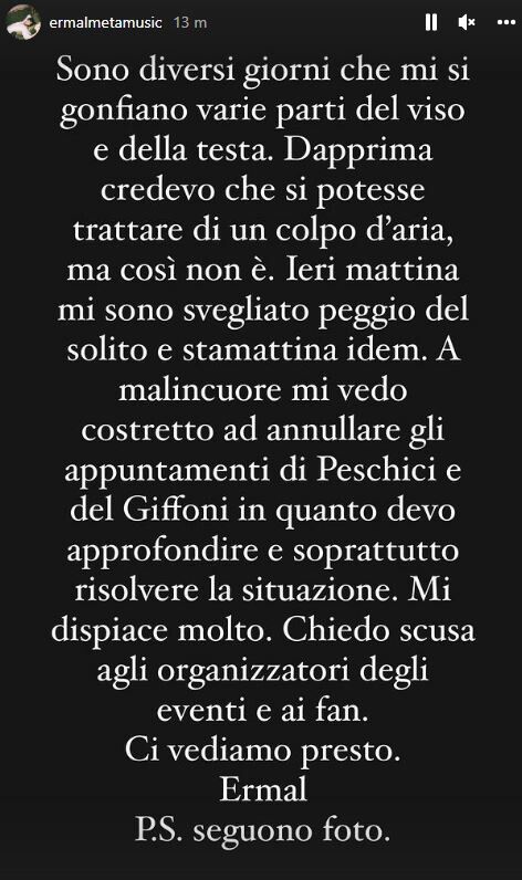Paura per Ermal Meta: "Mi si gonfiano parti del viso e della testa"