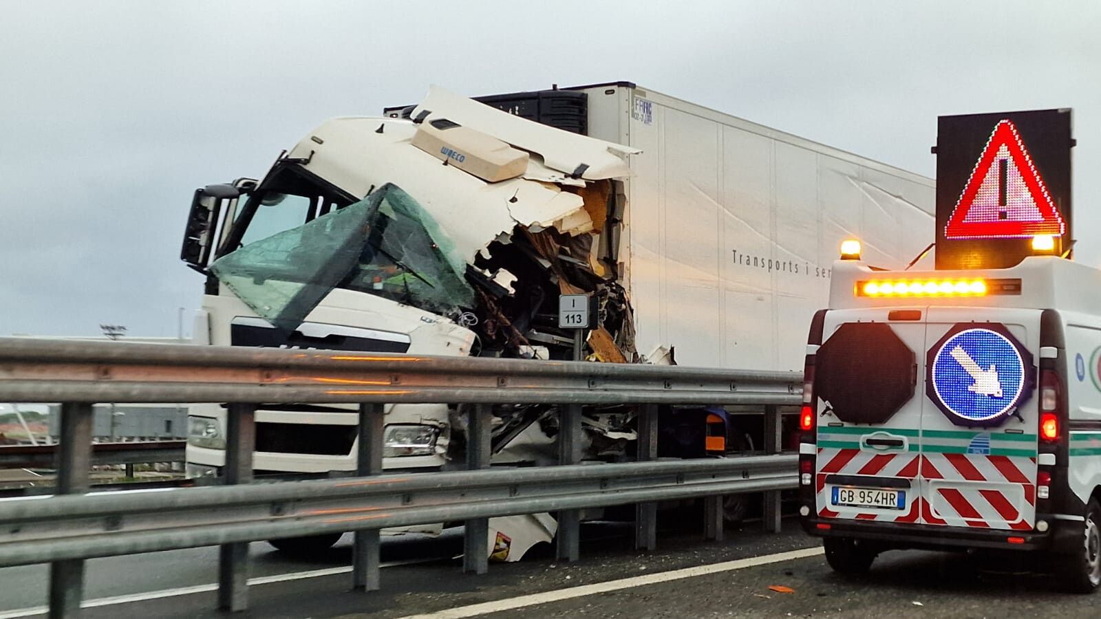 Un violento nubifragio si è abbattuto sulla provincia di Massa-Carrara, causando forti disagi sull'A12. Un incidente, la cui dinamica è ancora da chiarire, ha coinvolto un autoarticolato, ora adagiato al guard rail con il vetro rotto. Sul manto autostradale ci sono foglie e rami sparsi ovunque. Spuntano anche una scarpa e altri residui di un carico andato perso. Si segnalano code e rallentamenti.
