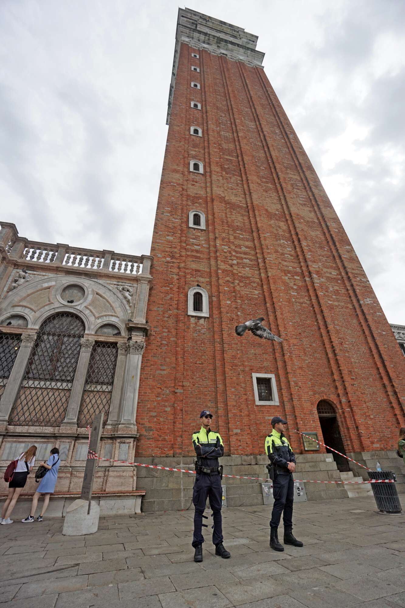 Un nubifragio ha colpito Venezia, provocando il distacco di frammenti di mattoni dalla torre del campanile di San Marco. I turisti che si trovavano ancora in visita al monumento sono stati fatti uscire, e la zona è stata transennata. Alla base del campanile sono visibili alcuni pezzi di mattone rosso, staccatisi dall'alto.
