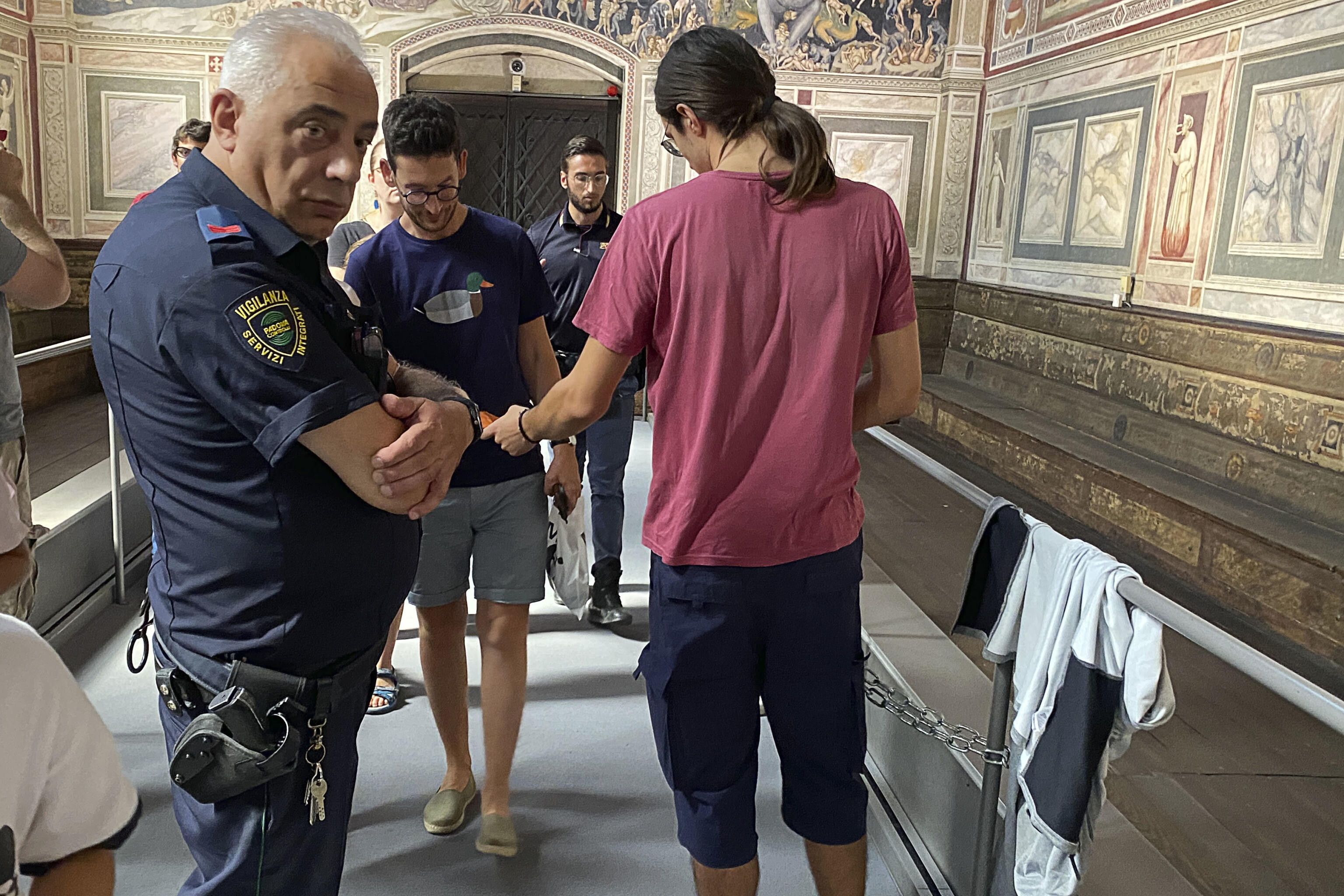 Nuovo blitz non violento degli attivisti di Ultima Generazione, che stamane sono entrati nella Cappella degli Scrovegni a Padova, incatenandosi alle balaustre che delimitano il percorso dei visitatori al ciclo di affreschi di Giotto. A quel punto uno di loro ha letto ad alta voce i messaggi di protesta del movimento, contro lo spreco di acqua ed energia. Poco dopo è arrivata la polizia, che ha cercato dapprima di convincere gli attivisti a interrompere la protesta, poi, visto il loro rifiuto, ha fatto tagliare con delle cesoie le catene ed ha portato via a braccia i manifestanti.