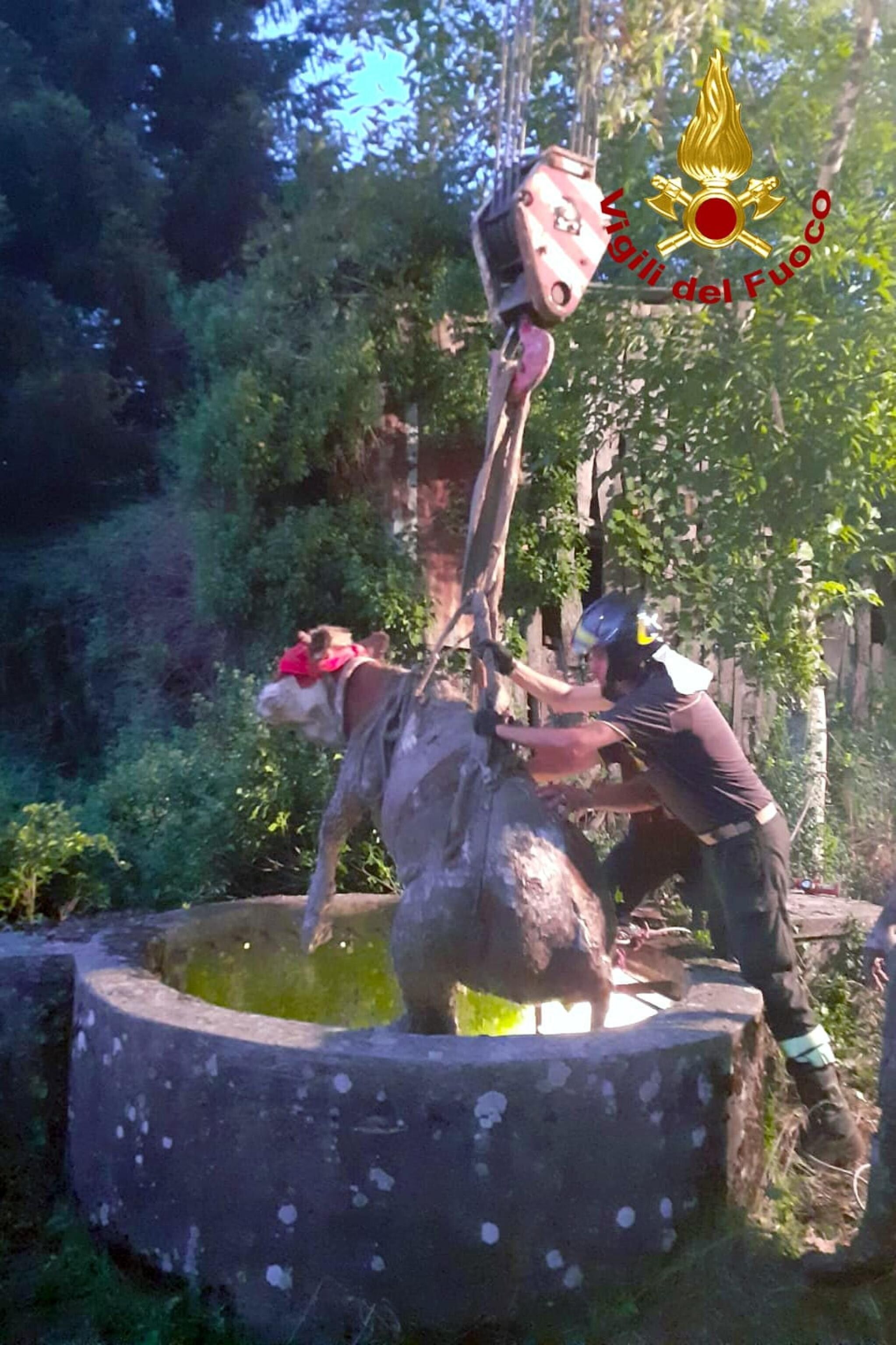 Un intervento decisamente insolito per i vigili del fuoco di Montella, in provincia di Avellino. Nella giornata di martedì 30 agosto, i caschi rossi hanno salvato una mucca che era caduta in un pozzo profondo 15 metri in località Bagno della Regina. A lanciare l'allarme è stato l'allevatore. Dopo diverse ore di lavoro, e grazie a uno speciale argano inviato dal Comando provinciale di Avellino, il bovino è stato recuperato.