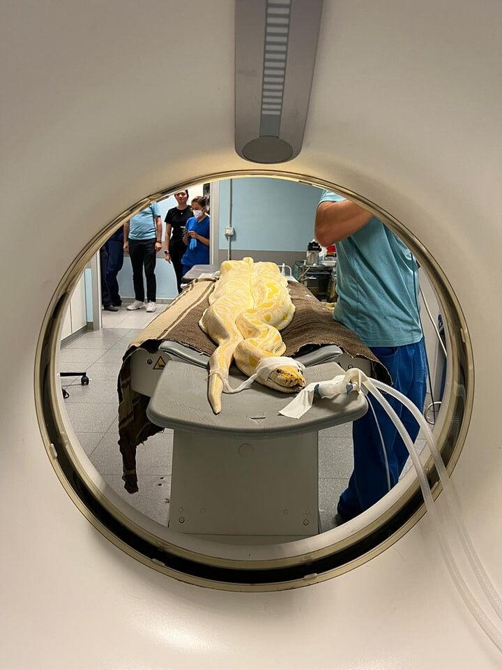 E' un trasporto eccezionale quello che hanno organizzato i veterinari del Canc, il Centro animali non convenzionali, di Torino per poter curare nella loro struttura Pippo, pitone moluro di circa 4 metri. Dell'ingresso del serpente in clinica è stata data dettagliata testimonianza sulla pagina Facebook della stessa: con un video, infatti, è stato raccontato il ricovero di Pippo, serpente di proprietà, per accertamenti. Quasi 600 i commenti piovuti sotto quelle immagini con tanti che si chiedono l'opportunità di tenere in casa come domestico un animale di quelle dimensioni. Nei successivi aggiornamenti con tanto di foto, Pippo viene sedato e sottoposto alla Tac e, poi, lasciato senza "colazione", in attesa dell'intervento che lo farà tornare in forma