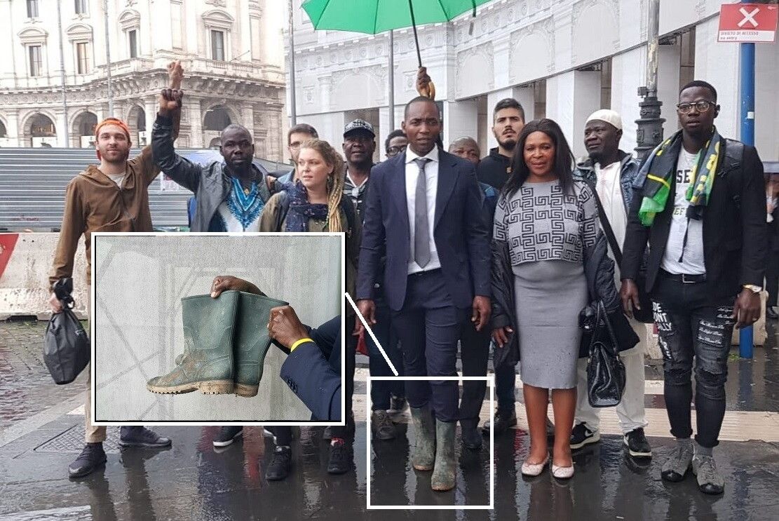 A Roma, davanti a Montecitorio, una foto di gruppo proponendo la marcia dei lavoratori de "Il Quarto Stato" della tela di Giuseppe Pellizza da Volpedo e in Aula indossando gli stivali sporchi di fango proveniente dai campi dove si raccolgono i pomodori. E' così che ha fatto il suo debutto alla Camera il neodeputato Aboubakar Soumahoro, sindacalista di origini ivoriane, candidato con Alleanza Verdi-Sinistra, da anni impegnato nella lotta contro il caporalato, le morti bianche sul lavoro e lo sfruttamento dei braccianti. "Porto questi stivali, simbolo delle sofferenze e speranza del Paese Reale, che entrano con me alla Camera per legiferare, in memoria di chi è morto di lavoro, chi è discriminato e chi ha fame. Coi piedi nel fango della realtà e lo spirito nel cielo della speranza", ha spiegato Soumahoro via Twitter, aggiungendo l'hashtag #noiora