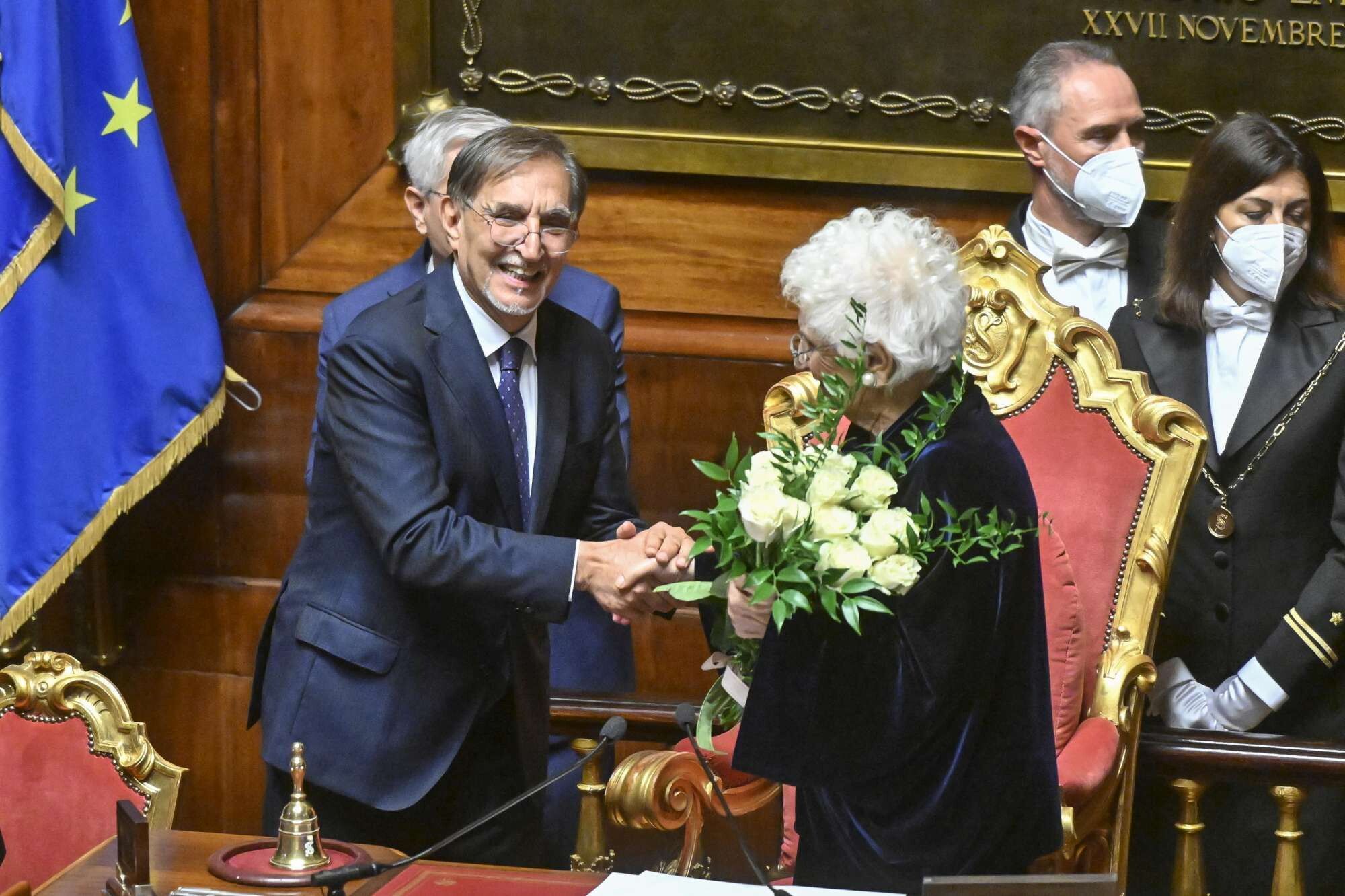 Ignazio La Russa ha assunto la presidenza del Senato salendo sul più alto scranno di Palazzo Madama. L'esponente di FdI ha portato un mazzo di rose bianche per Liliana Segre. Applausi dai banchi del centrodestra, Forza Italia compresa. Applausi più tiepidi anche dai banchi dell'opposizione.