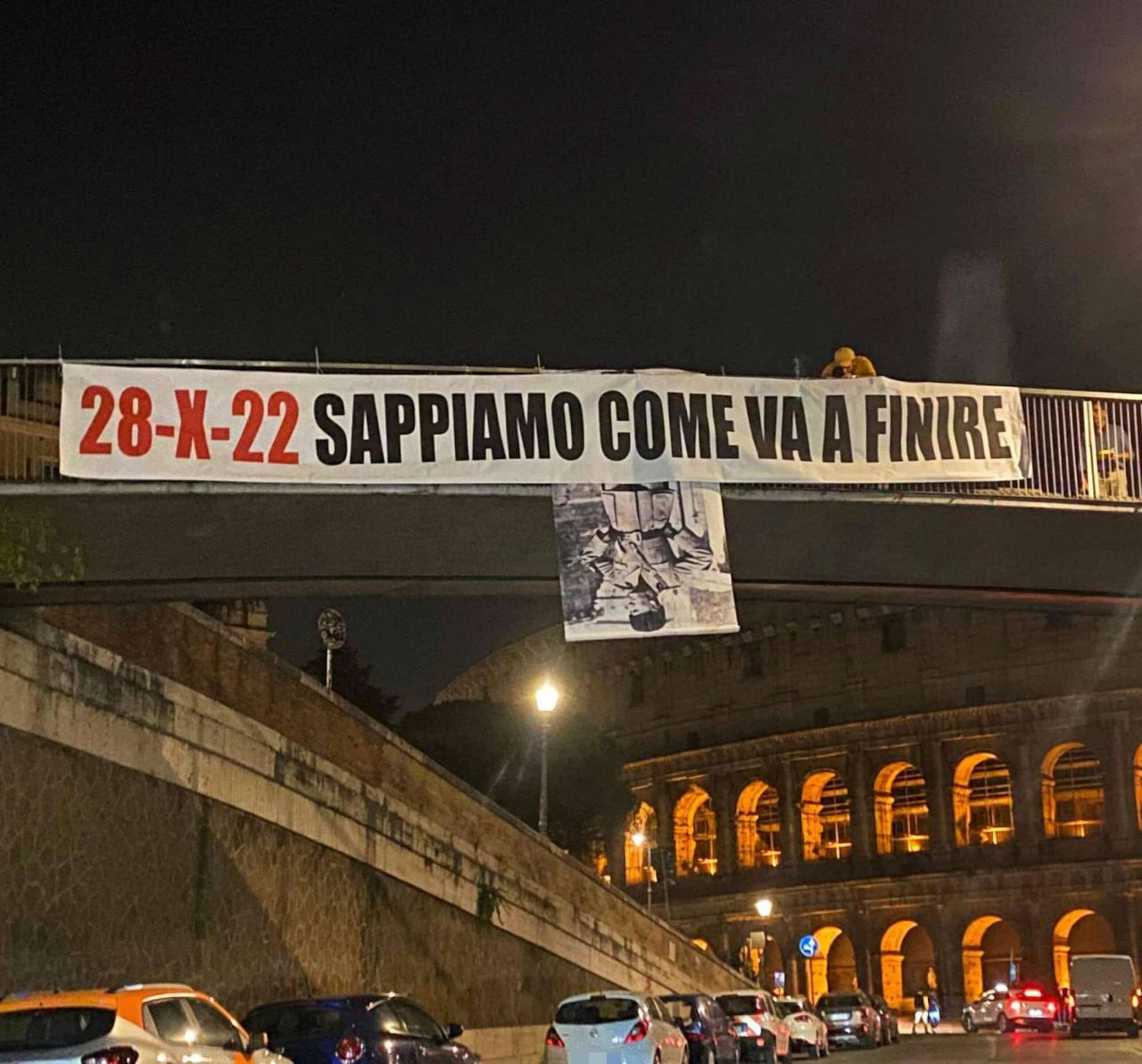 Al Colosseo due striscioni pro e contro la Marcia su Roma