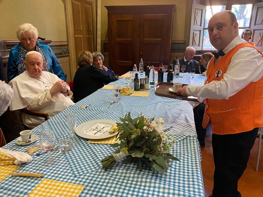 In occasione della visita privata a Portacomaro, paese di origine della sua famiglia in provincia di Asti, i ragazzi e le ragazze di Albergo Etico hanno servito a papa Francesco il pranzo in Vescovado ad Asti e gli hanno anche proposto un dolce speciale. Il dolce chiamato "Papalina di caffè" è stato creato per l'occasione dal maestro pasticcere Jorge Bianchini insieme allo chef Antonio De Benedetto. E' composto da una base di biscotto alla nocciola tonda gentile (in ricordo della terra astigiana), una farcitura centrale di dulce de leche argentino (in ricordo delle terre del Santo Padre) e una meringa a forma di papalina. "E' stata un'esperienza incredibile e un onore per i nostri ragazzi e ragazze incontrare e vedere da vicino il Papa", ha detto Alex Toselli, presidente di Albergo Etico. "Ringrazio tutti coloro che hanno partecipato con professionalità a questa giornata e tutti coloro che hanno permesso si concretizzasse questa grande opportunità. E' stata un'emozione che resterà indelebile per sempre, oltre che un'occasione di crescita", ha concluso.