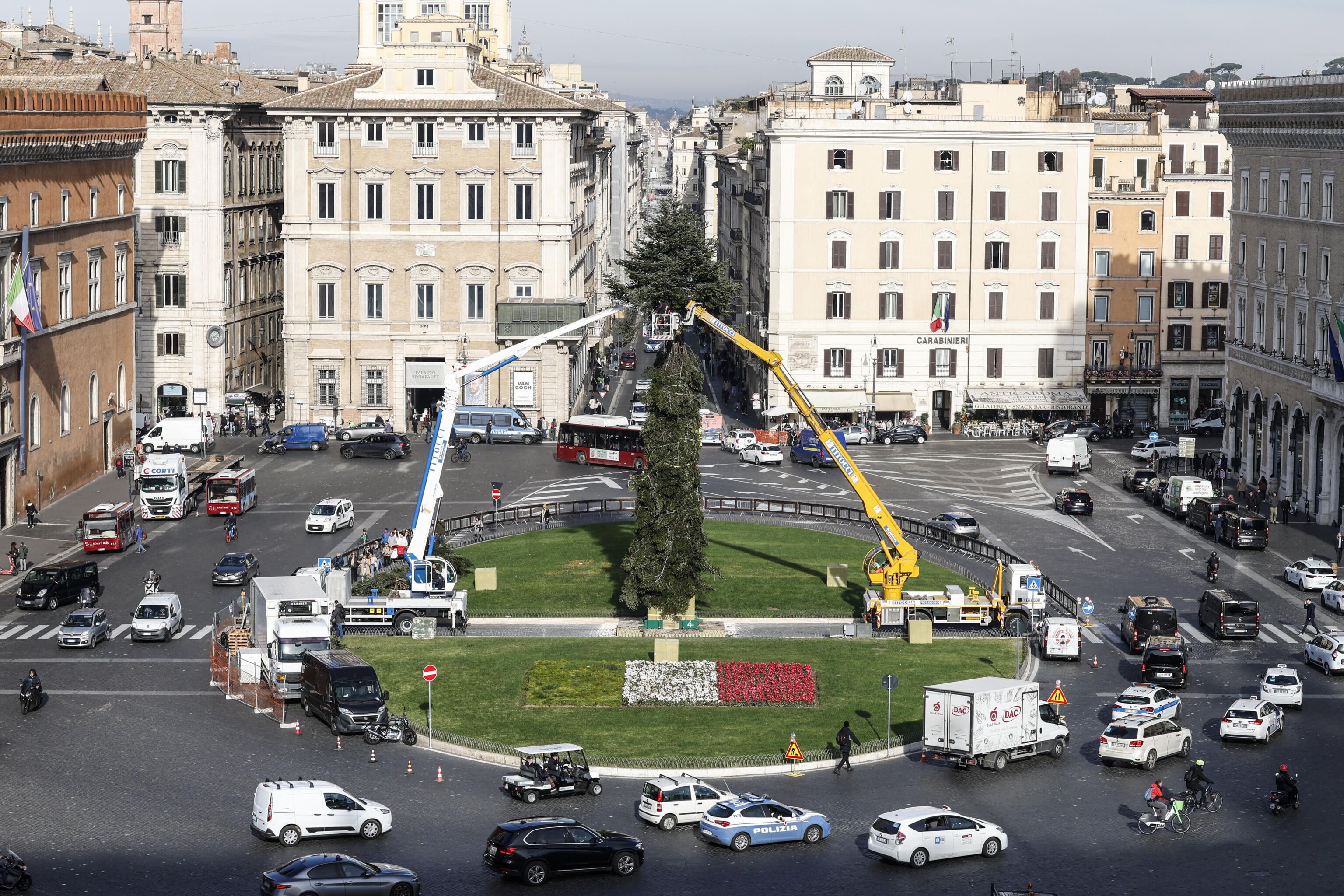 E' tornato Spelacchio: è arrivato il 29 novembre a piazza Venezia dove è cominciato l'allestimento del nuovo albero di Natale di Roma. Alto 23 metri, l'abete del Caucaso viene da un vivaio della provincia di Varese e sarà allestito con 100mila lampadine e 800 sfere di colore rosso, oro e argento. Sarà a impatto zero, così come l'illuminazione di via del Corso, poiché alimentato dal fotovoltaico di Acea. L'8 dicembre alle 18 verrà acceso dal sindaco Roberto Gualtieri.