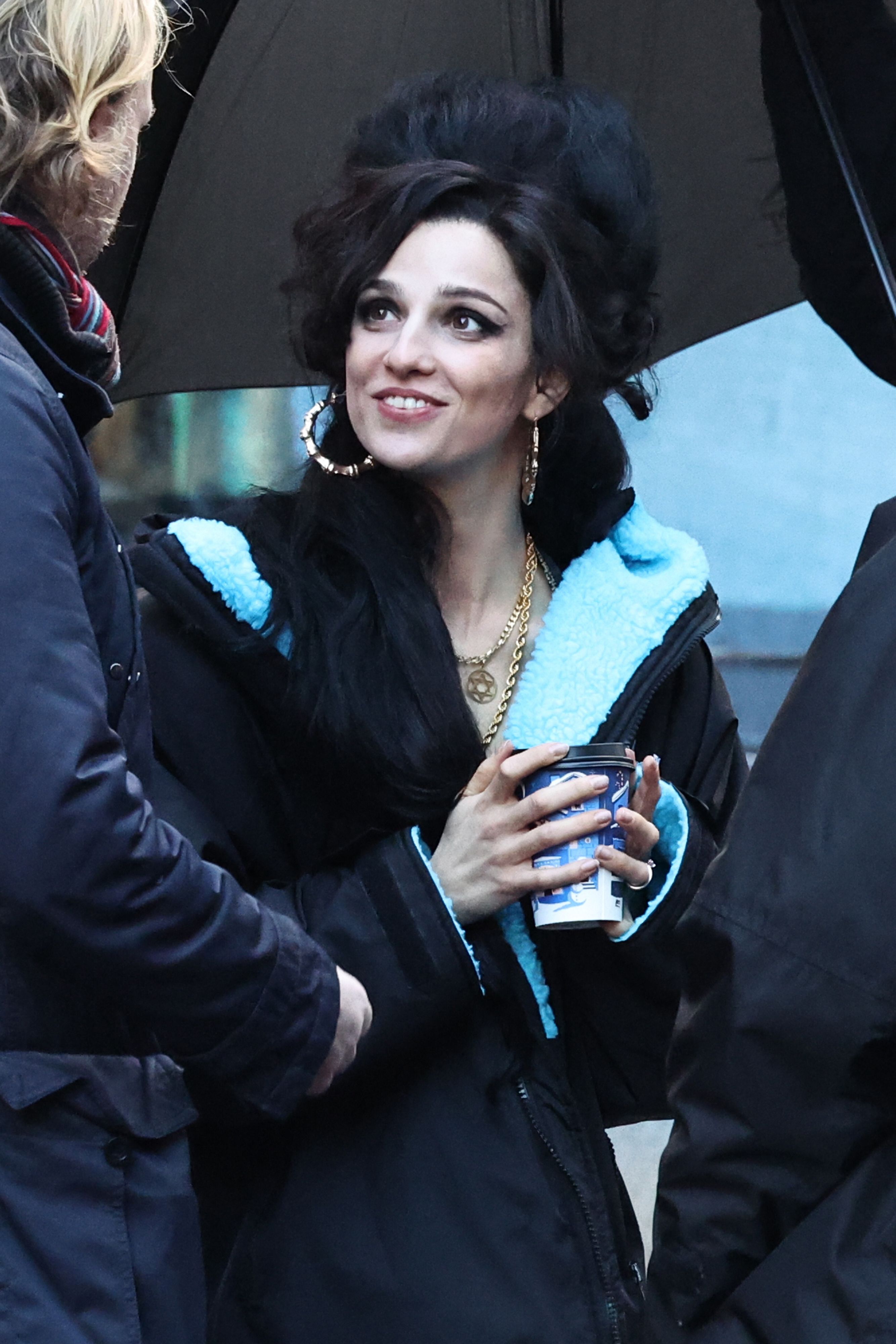 Marisa Abela nei panni di Amy Winehouse sul set di "Back To Black"