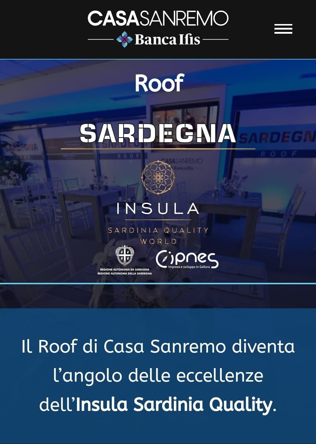 Sei giornate alla scoperta dell'Isola attraverso interviste accompagnate dalla proiezione di filmati sui percorsi esperienziali focus del programma Insula – Sardinia Quality World, con un appuntamento giornaliero nella trasmissione "Italia in Vetrina", format televisivo di Casa Sanremo, attività di cooking show, e serate a tema "Sardegna Gourmet - I sentieri del turismo enogastronomico" sviluppate nell'area di ristorazione ROOF di Casa Sanremo integralmente brandizzata Sardegna, all'interno del Palafiori.