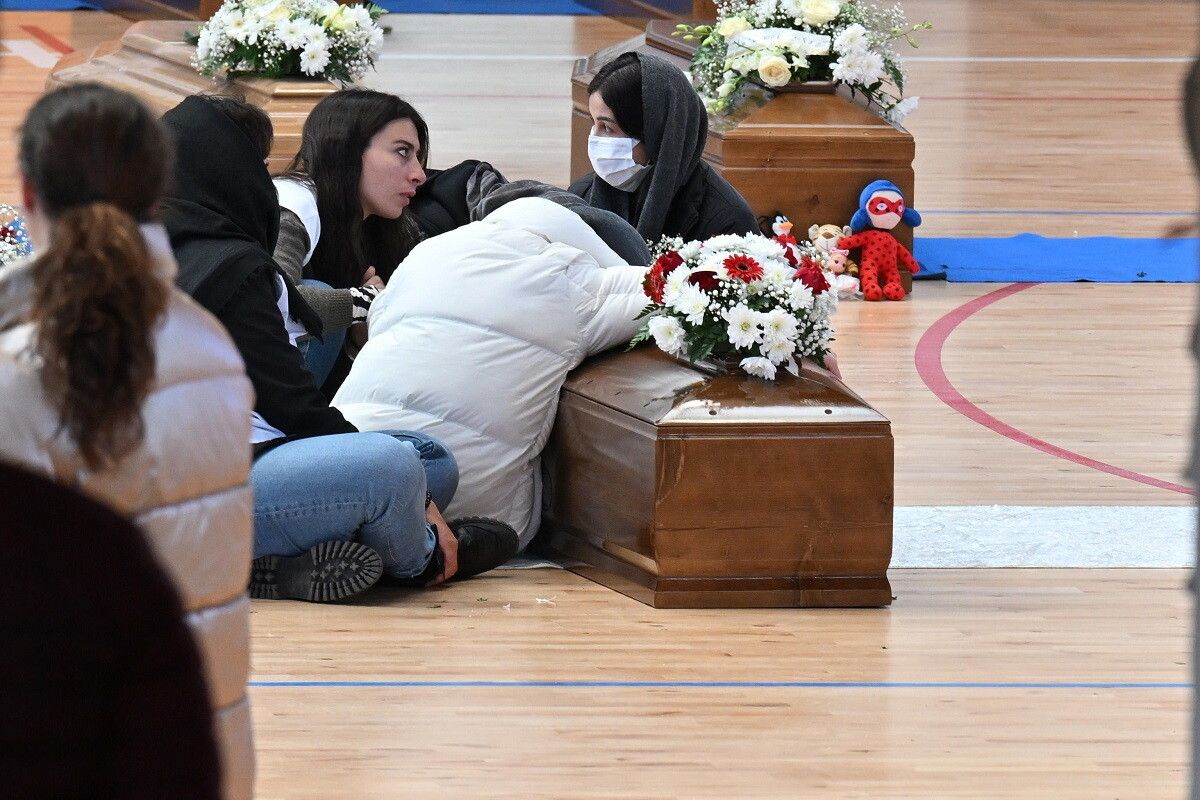 La camera ardente al Palamilone, il palazzetto dello sport di Crotone, che accoglie le bare delle vittime del naufragio di Steccato di Cutro, è stata aperta, in un'atmosfera di grande commozione e cordoglio, dalla preghiera interreligiosa guidata dall'iman della moschea di Cutro, Mustafa Achik, e dal vescovo di Crotone, Angelo Raffaele Panzetta. Tanta la gente arrivata da tutta la Calabria per rendere omaggio alle, per ora, 66 bare poste sul parquet della struttura. Presenti tutti i 27 sindaci del Crotonese e gli amministratori locali. Due signore crotonesi sono state le prime ad entrare per rendere omaggio alle vittime. "Speriamo sia l'ultima - ha detto una di loro tra le lacrime, - dal governo devono vedere cosa fare". "Siamo qui - ha aggiunto l'altra - perché è una tragedia immane che non può non colpirci. Siamo stati fortunati a nascere qui". Grande è il dolore tra quelle bare, molte delle quali bianche. Il pianto dei sopravvissuti e dei membri della famiglia delle vittime, (tanti parenti sono arrivati dalla Germania e da altri Paesi europei), riempie il palasport.