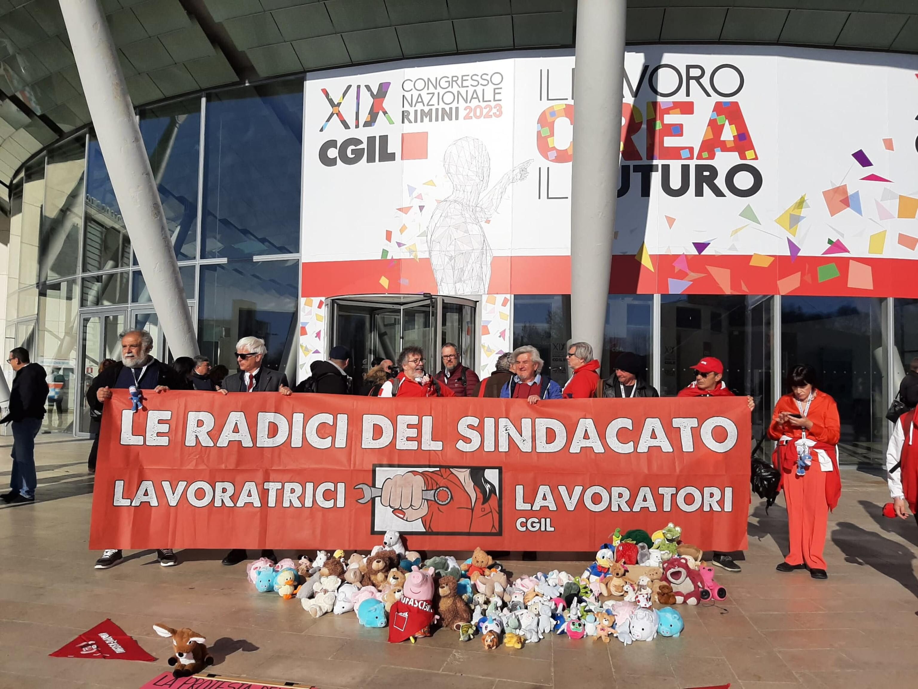 Fotogallery - Cgil, a Rimini presidio contro il governo Meloni con striscioni e peluche