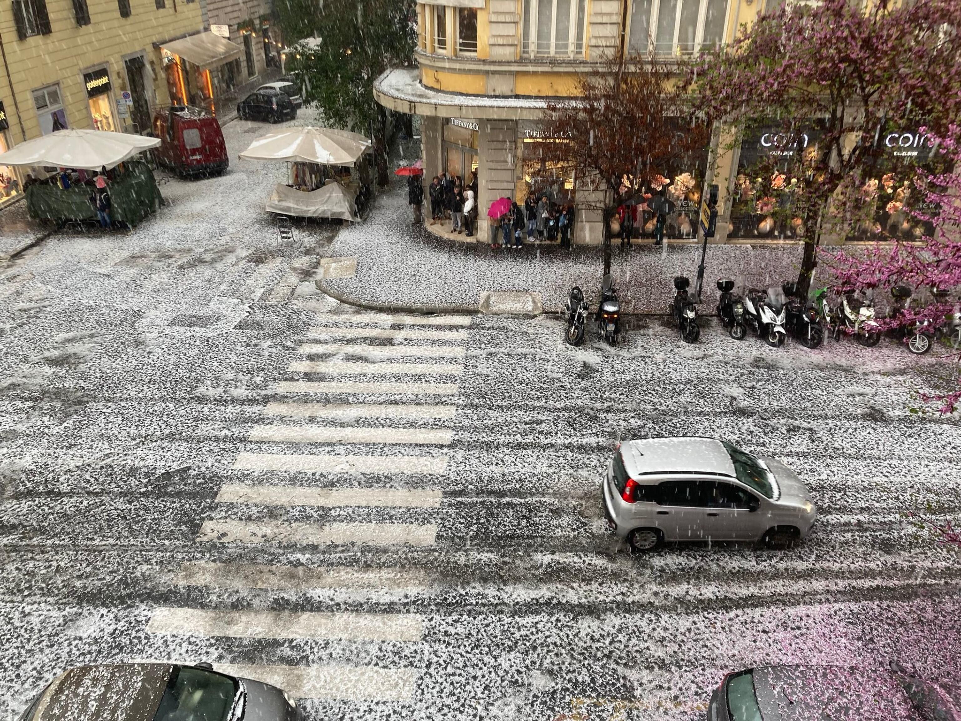 Forte grandinata su Roma nel tardo pomeriggio di domenica. Dopo una giornata assolata e calda, sulla Capitale il tempo è cambiato in pochi minuti e un'intensa grandinata si è abbattuta sulla città. In centro, ma anche nei quartieri periferici, i chicchi di ghiaccio fuori misura hanno imbiancato le strade. Il passaggio del temporale è stato veloce e nel giro di pochi minuti la situazione è tornata alla normalità.