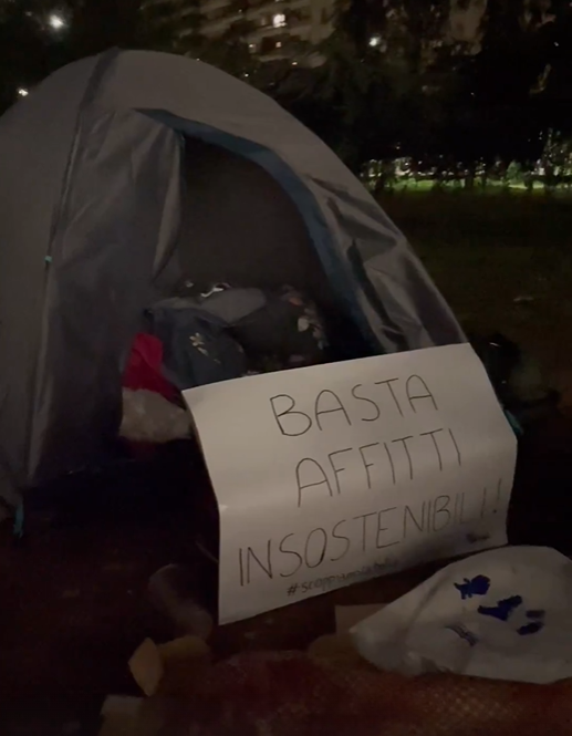 Una ragazza di 23 anni di Alzano Lombardo (Bergamo) e studentessa di ingegneria ambientale al Politecnico di Milano, Ilaria Lumera, si è accampata davanti all'istituto universitario per protestare contro "gli affitti insostenibili". Martedì ha passato la notte in una tenda piantata in piazza Leonardo da Vinci dove dormirà fino al 7 maggio. L'iniziativa dell'universitaria è sostenuta dalla rappresentanza studentesca La Terna Sinistrorsa. "Da anni a questa parte i costi degli affitti milanesi sono fuori portata. Vivere a Milano significa arrivare a spendere 600 euro (spese escluse) per una stanza singola - ha spiegato La Terna Sinistrorsa in un post -. Nonostante la situazione sia ormai nota e ci sia stata apertura da parte delle istituzioni, non sono ancora state previste delle misure in grado di rendere più accessibili gli alloggi milanesi. Per questo motivo Ilaria, studentessa del Politecnico di Milano, ha deciso di piantare la sua tenda in piazza Leonardo Da Vinci per dormire qui, fino a domenica 7 maggio. La Terna Sinistrorsa è decisa a fare le pressioni necessarie affinché le istituzioni pubbliche, dalla Regione al governo, intervengano per sanare e risolvere la situazione. Se anche tu sei contro questa situazione unisciti a Ilaria! Porta la tua tenda, il tuo lettino o qualsiasi cosa tu voglia e unisciti a noi. Qualsiasi tipo di realtà, come associazioni, gruppi, collettivi, è benvenuta a unirsi per aiutarci a portare avanti questa manifestazione". Da parte sua, Ilaria ha raccontato su Instagram che la scorsa notte un compagno di università le ha fatto compagnia garantendo la sua sicurezza e anche la polizia è passata a controllare che fosse tutto a posto. "Se volete passare oggi a farmi un saluto - il suo invito in una storia - vi aspetto".