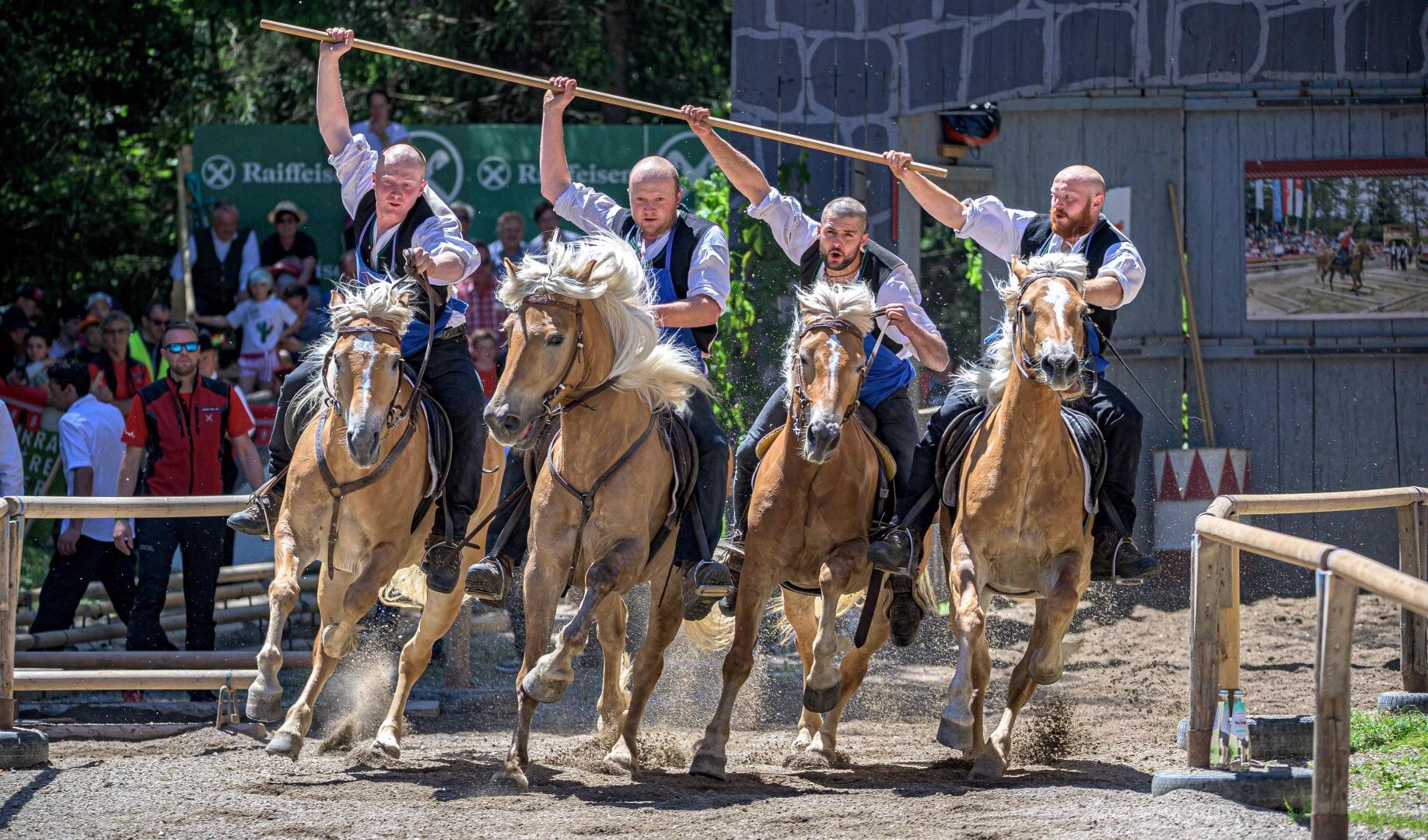 Prove di abilità di cavalieri e cavalli nella splendida natura ai piedi dello Sciliar