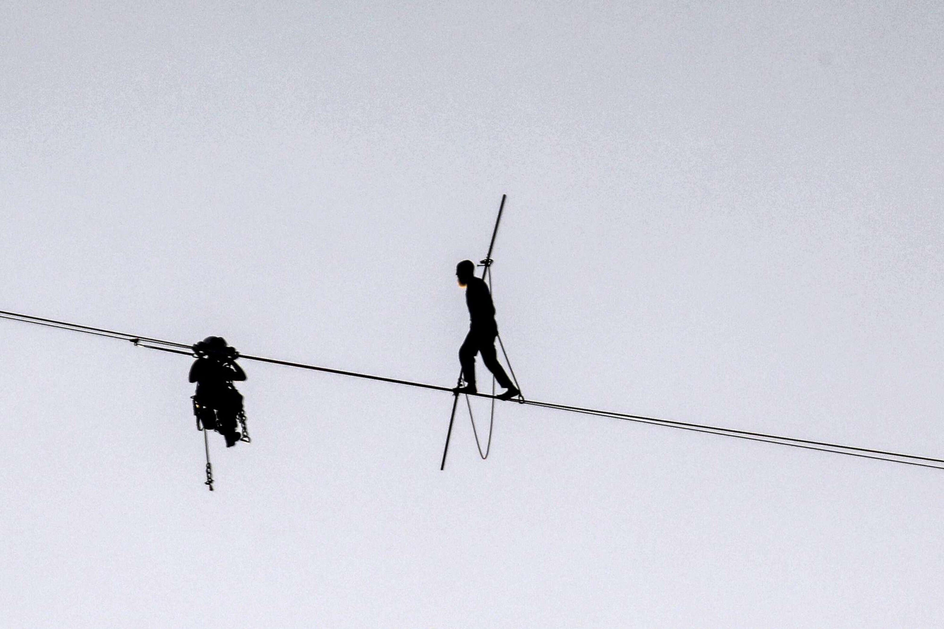 Fotogallery - Milano, il funambolo Andrea Loreni cammina su un cavo a 140 metri di altezza