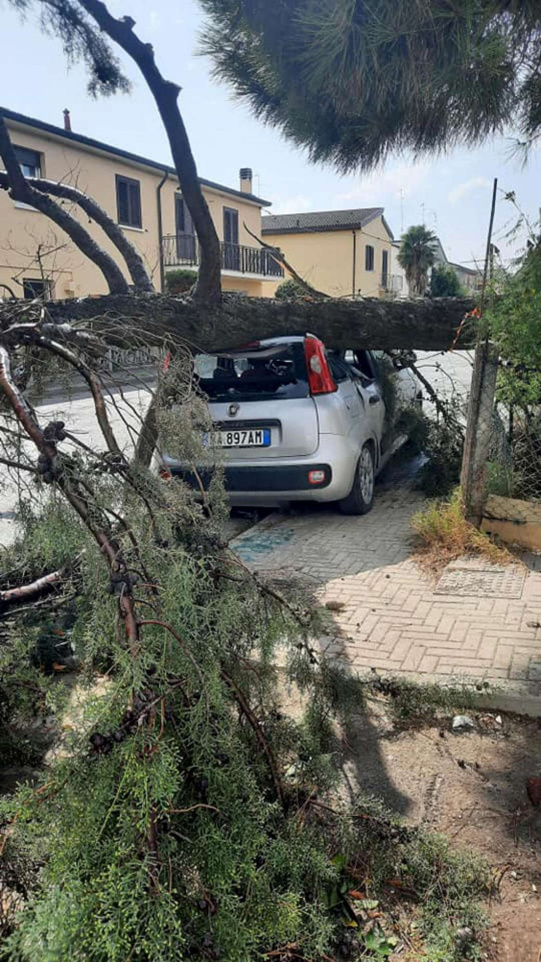 Danni alle colture ad Alfonsine, Fusignano e Conselice, nel Ravennate, dove le forti raffiche di vento hanno scoperchiato tetti, divelto serre, fatto crollare alberi e piegato decine di filari di vite.
