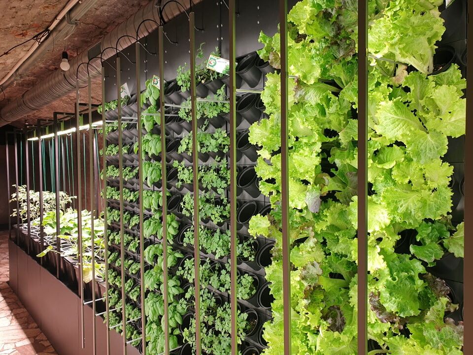 Si tratta di uno dei pochi casi al mondo di "indoor vertical farming" sotterraneo, cioè una produzione agricola condotta in un ambiente controllato, dove le specie vegetali sono disposte in pareti complete di luce e irrigazione e possono così crescere e fornire ortaggi.