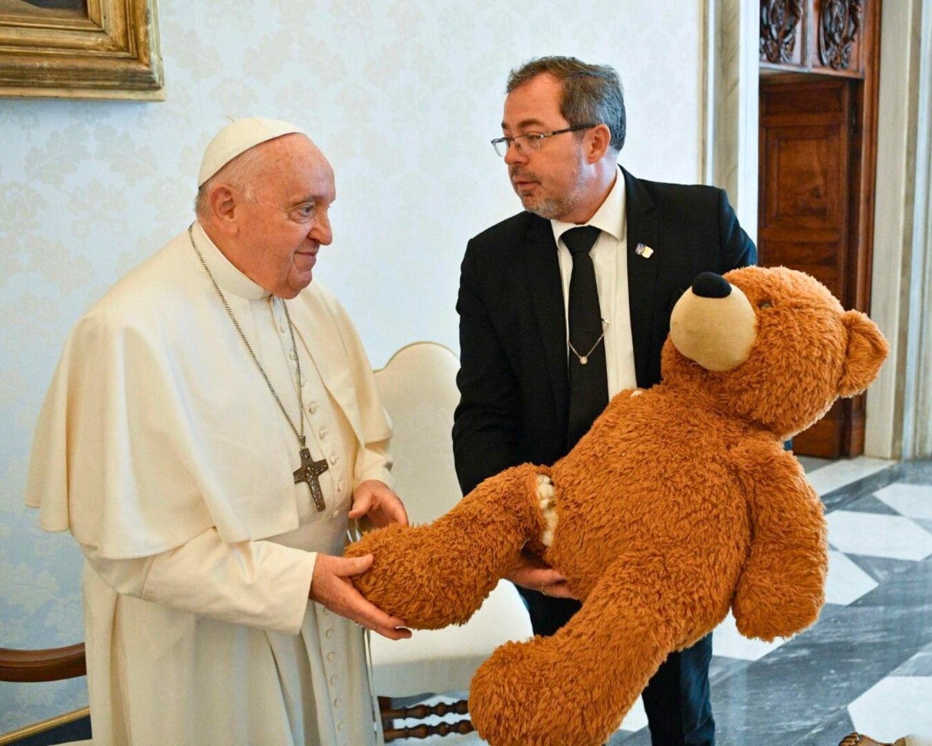 Fotogallery - Guerra in Ucraina, al Papa in regalo un orso di peluche "ferito" in memoria dei bimbi morti