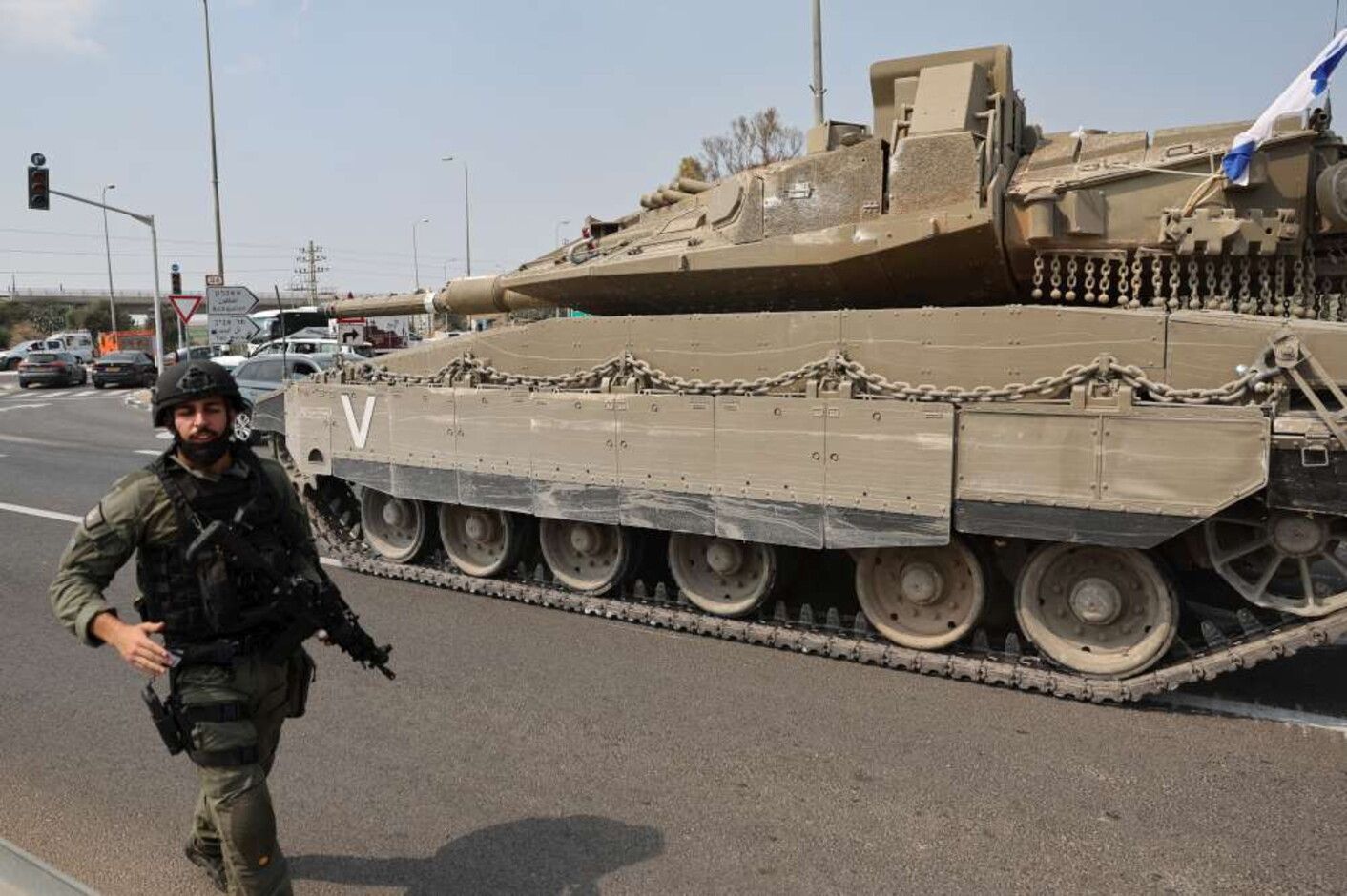 Tank israeliani si dirigono verso la Striscia di Gaza. Stanno percorrendo una strada vicino a Sderot, cittadina non lontana dal confine