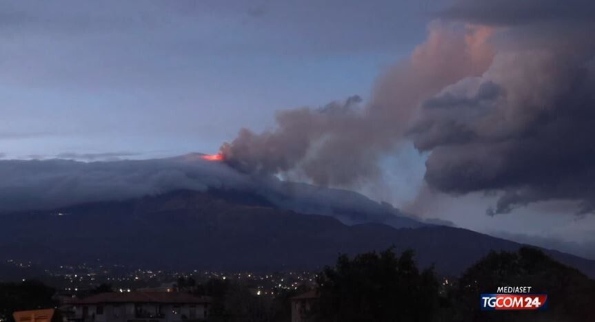 Etna, fontana di lava da Sud-Est: colonna eruttiva alta 4,5 km
