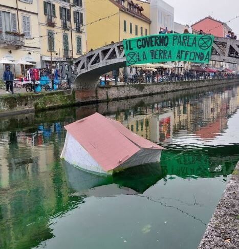 Fotogallery - Blitz degli eco-attivisti a Milano, il Naviglio si tinge di verde