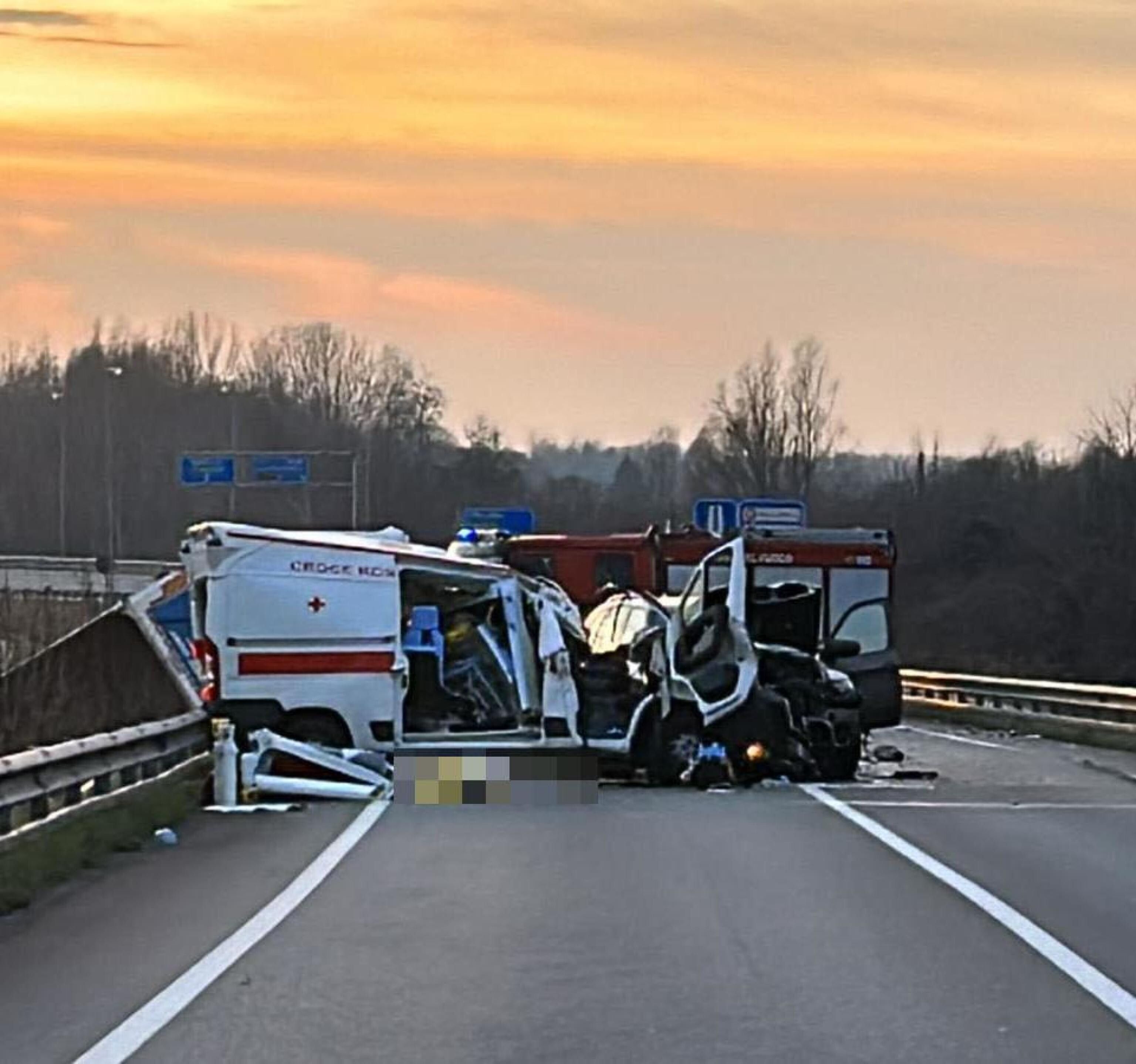 Fotogallery - Incidente tra un'ambulanza, un camion e un Suv a Pordenone: tre morti e due feriti