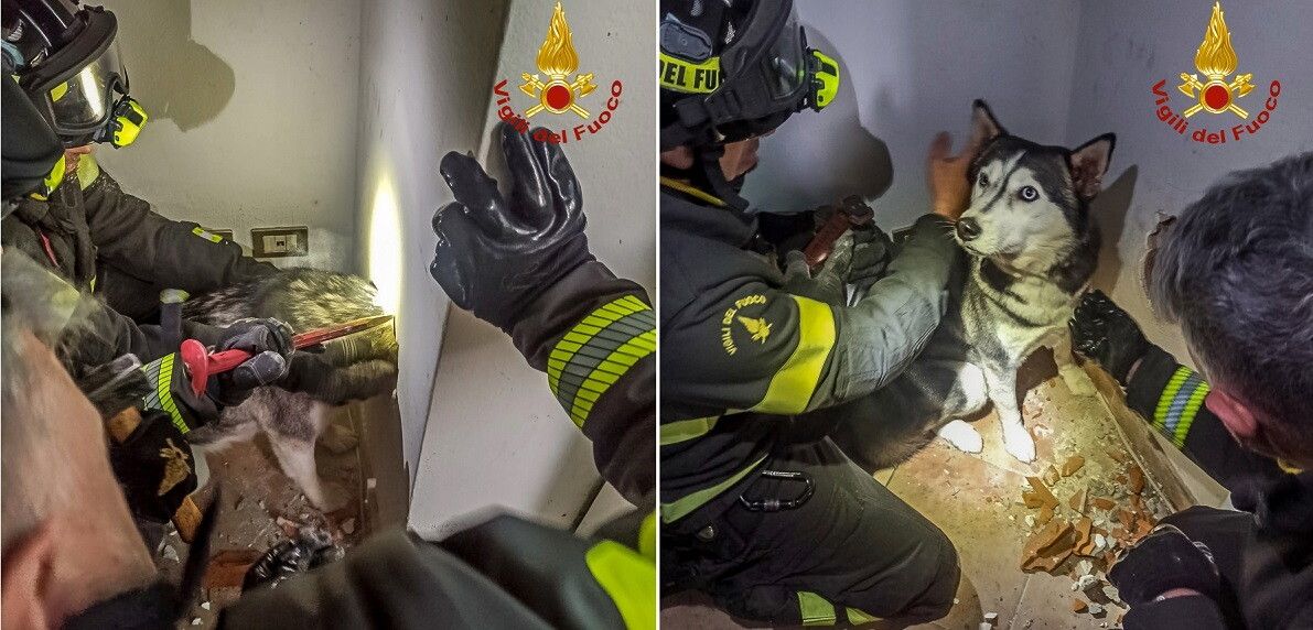 Fotogallery - Milano, cane infila testa nella griglia dell'aerazione, salvato dai vigili del fuoco
