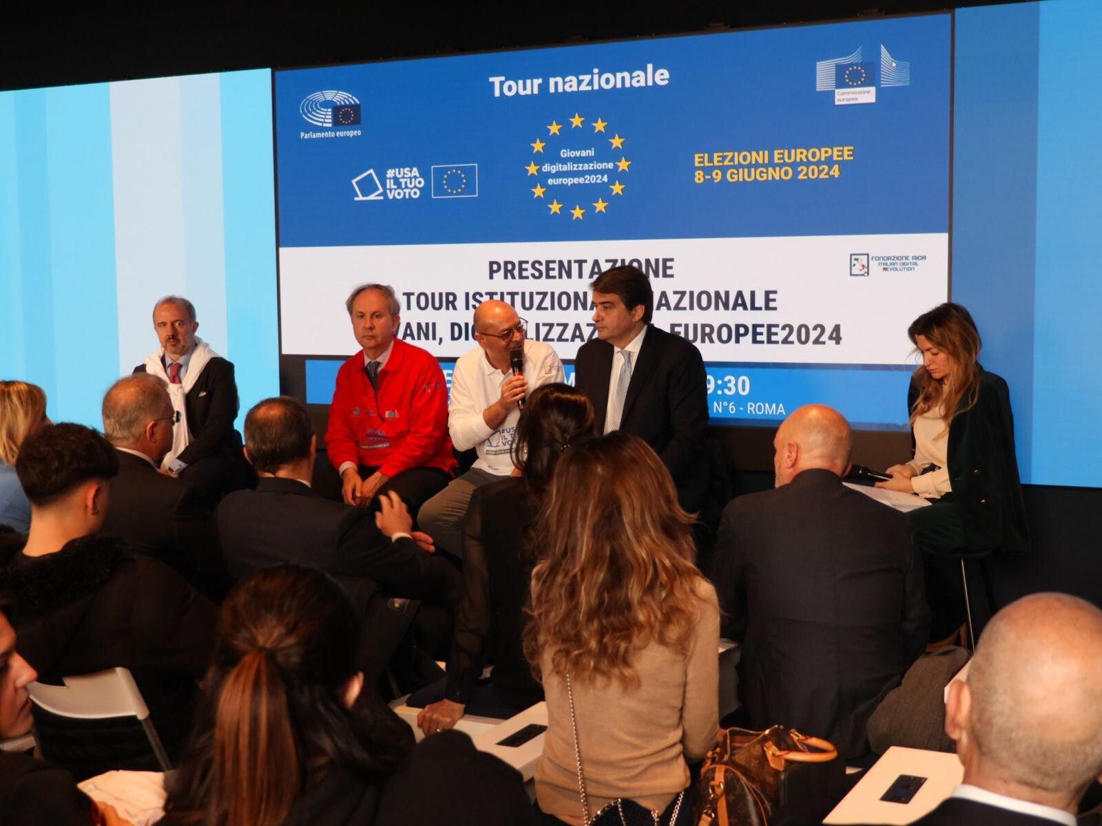 Mercoledì, presso Esperienza Europa – David Sassoli di Roma, è stato presentato il tour istituzionale nazionale "Giovani, digitalizzazione, Europee2024". L'evento è stato organizzato congiuntamente dal Parlamento europeo, dalla Commissione europea e dalla Fondazione AIDR, e ha visto la partecipazione attiva degli studenti del Liceo Vittorio Colonna, che celebra quest'anno il suo 150º anniversario. Il momento di apertura ha visto i saluti istituzionali di Carlo Corazza, direttore dell'Ufficio in Italia del Parlamento europeo; Antonio Parenti, Direttore della Rappresentanza in Italia della Commissione europea, e Mauro Nicastri, presidente della Fondazione Aidr. All'incontro hanno partecipato importanti figure istituzionali: Raffaele Fitto, ministro per gli Affari Europei, le Politiche di Coesione e il Pnrr - il quale ha dichiarato che "dobbiamo lavorare per fa comprendere l'importanza della campagna elettorale ai ragazzi. Partecipare al voto è decisivo per il proprio futuro" -, Beatrice Covassi, parlamentare europea, e Luca Sbardella, parlamentare italiano. La conclusione dell'evento è stata affidata a Pina Picerno, vicepresidente del Parlamento europeo, che ha detto: "Sarà un appuntamento elettorale cruciale per la nostra Europa. Saremo chiamati a eleggere il nuovo Parlamento e non sarà un'elezione ordinaria. Credo che la prossima legislatura dovrà essere una legislatura costituente. Per questo il coinvolgimento di giovani ragazze e ragazzi è importantissimo, perché si parla del loro futuro. Il tour che sta per partire sarà un'azione concreta per parlare con le nuove generazioni e sono molto felice che il Parlamento la sostenga".
