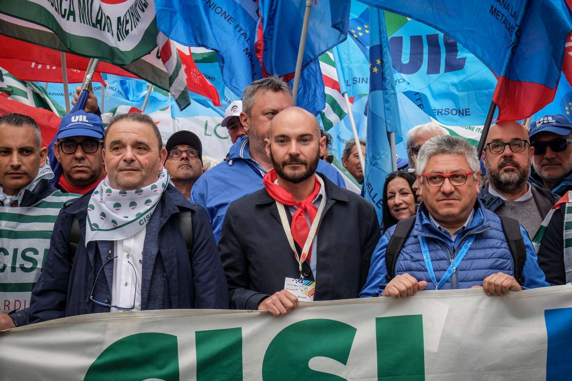 In migliaia sfilano per le vie della città con i vessill9i dei sindacati
