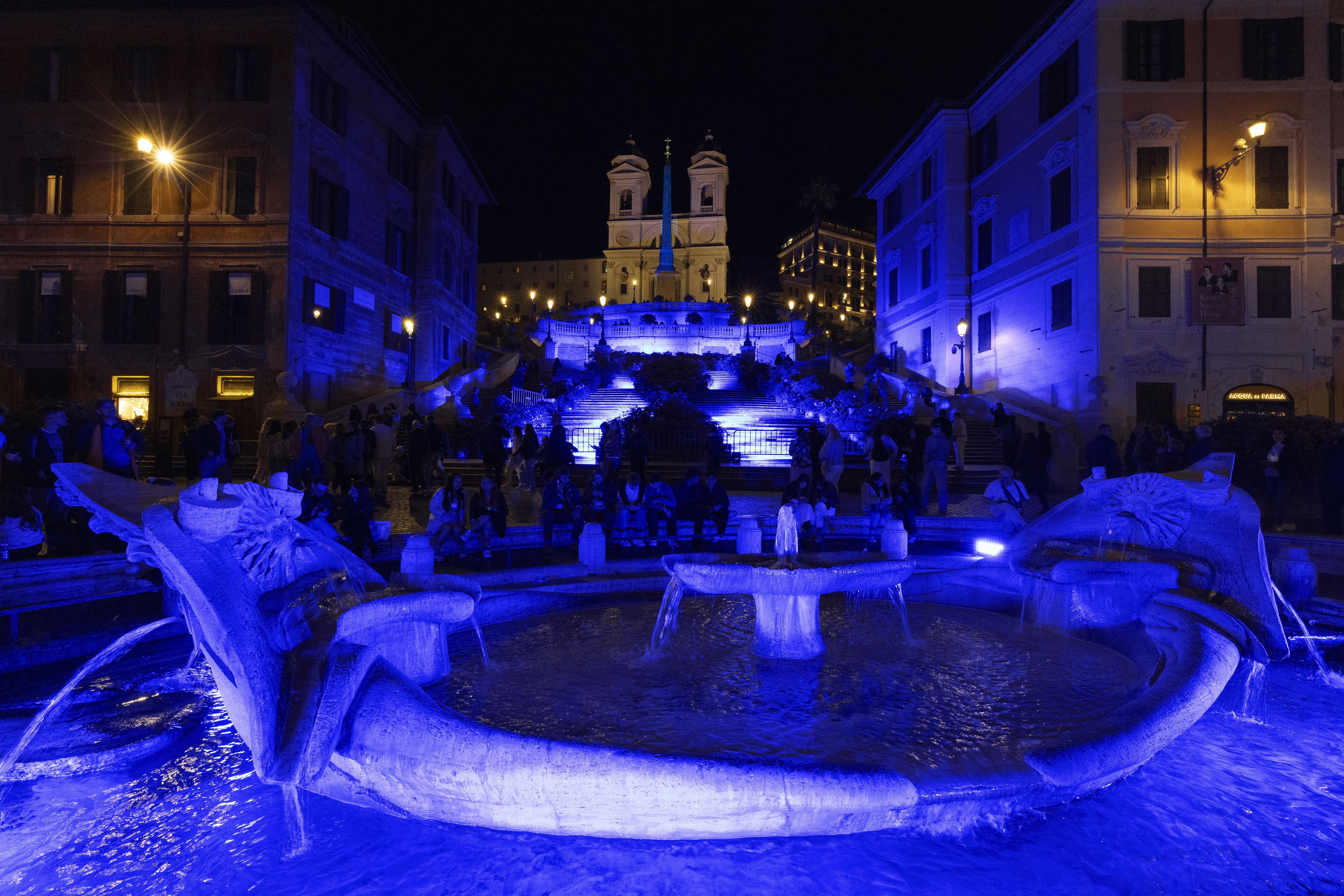 © Ufficio stampa|Roma ricorda Renato Balestra tingendosi del suo iconico blu: piazza di Spagna e la scalinata di Trinità dei Monti (credit: Monkeys Video Lab)