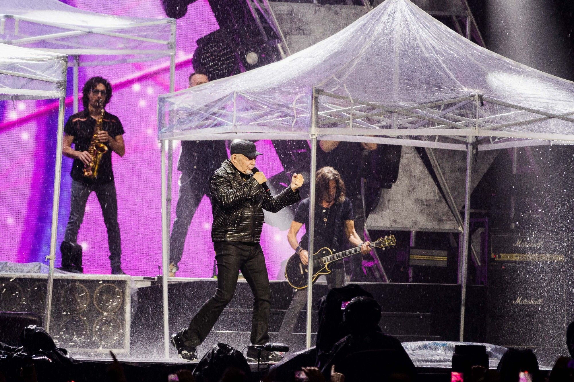 Fuori programma bagnato per Vasco Rossi. Durante il terzo dei sette concerti in programma a San Siro, sullo stadio milanese si è abbattuta una vera e propria bomba d'acqua. Il concerto è andato ovviamente avanti anche se Vasco e tutti i suoi musicisti si sono dovuti riparare sotto delle specie di gazebo aperti per l'occasione sul palco.