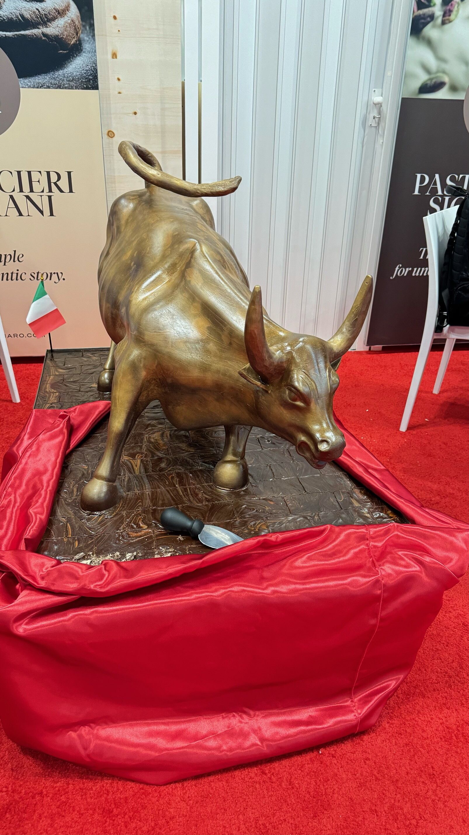 E’ stata un successo la sorpresa realizzata dai Maestri Pasticcieri Fiasconaro, eccellenza del Made in Sicily dolciario, che al Padiglione Italia del Summer Fancy Food di New York hanno esposto la riproduzione in cioccolato di Sicilia e di Modica del Toro di Wall Street in formato ridotto in omaggio dello scultore siciliano Arturo Di Modica. Sua infatti è la scultura in bronzo collocata presso il Bowling Green Park, nel quartiere della Borsa di New York a Wall Street.